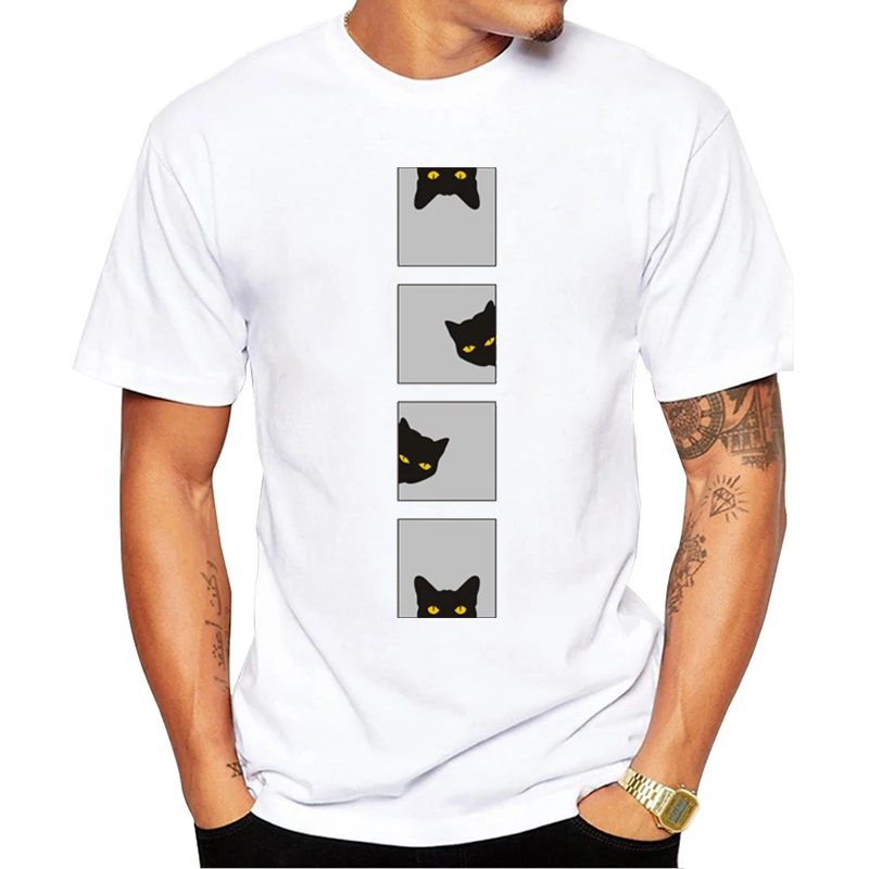 Модная мужская хипстерская Футболка с принтом кошки, с круглым вырезом и коротким рукавом