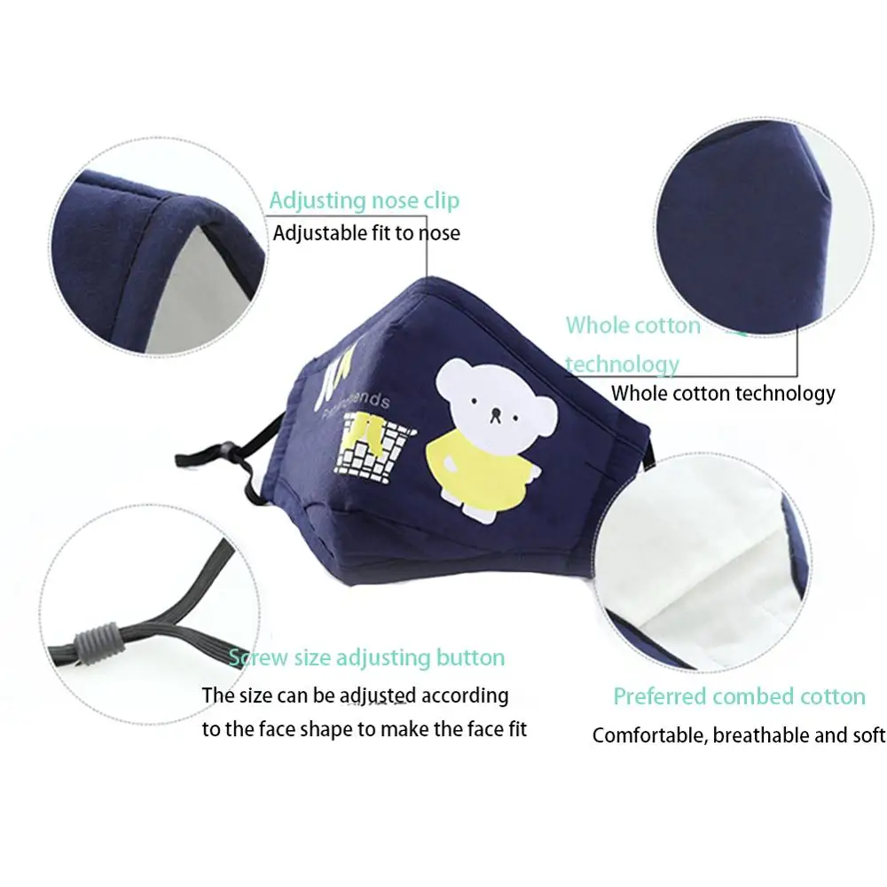 Совершенно новый и высокое качество. После того, как наденете маску, регулируемое носообразие в зависимости от формы носа каждого человека подходит к лицу, так что эффект уплотнения лучше, И пользователь в очках может эффективно уменьшить запотевание после регулировки. Мягкий, теплый, хорошая влагопроницаемость и впитывающий эффект, сохраняет кожу лица сухой и комфортной, стойкий эффект. С регулируемой петлей для ушей, подходит для детей 3-12 лет. Конструкция дыхательного клапана, одно и то же положение чередуется дважды, это уменьшает тепло и накопление влаги. Вставьте 5 слоев фильтр PM2.5 фильтр (поставляются с 1/2 шт. PM2.5 фильтровальной бумаги).Спецификация: