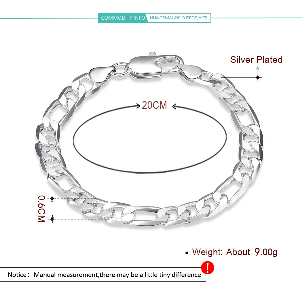 Женский браслет-цепочка с тремя звеньями, 6 мм, с посеребренным покрытием