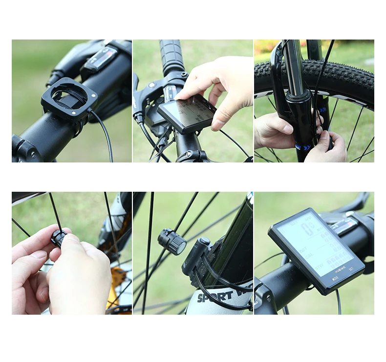 1. Закрепите основание на руле 2. Установите компьютер на основании 3. Положите провод вниз 4. Закрепите магнит на spoke5. Закрепите пусковое устройство на вилке (расстояние между магнитом и пусковым устройством должно быть в пределах 3 мм.)6. Завершите установку и начните ее использовать.
