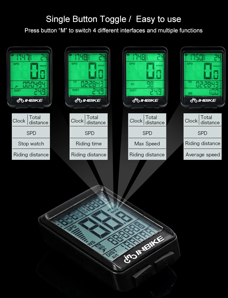 Информация о продукте: бренд: INBIKESize: 2,8 inchModel: проводной, беспроводной водонепроницаемый: Да Цвет: черный Источник питания: 2030 BatteryBlacklight Цвет: белый, зеленый место установки: руль Применение: велосипед, трицикл Особенности: подсветка, многофункциональный, простой в использовании, ЖК-экран, водонепроницаемый