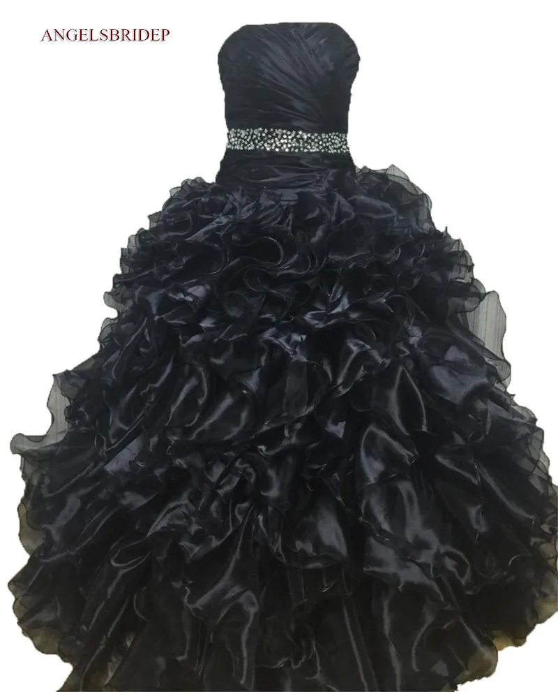 Роскошное черное платье без бретелек Quinceanera, бальное платье принцессы из органзы с блестящими стразами для вечеринок, 15