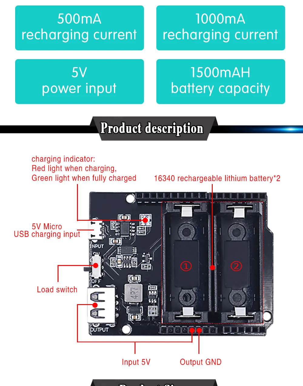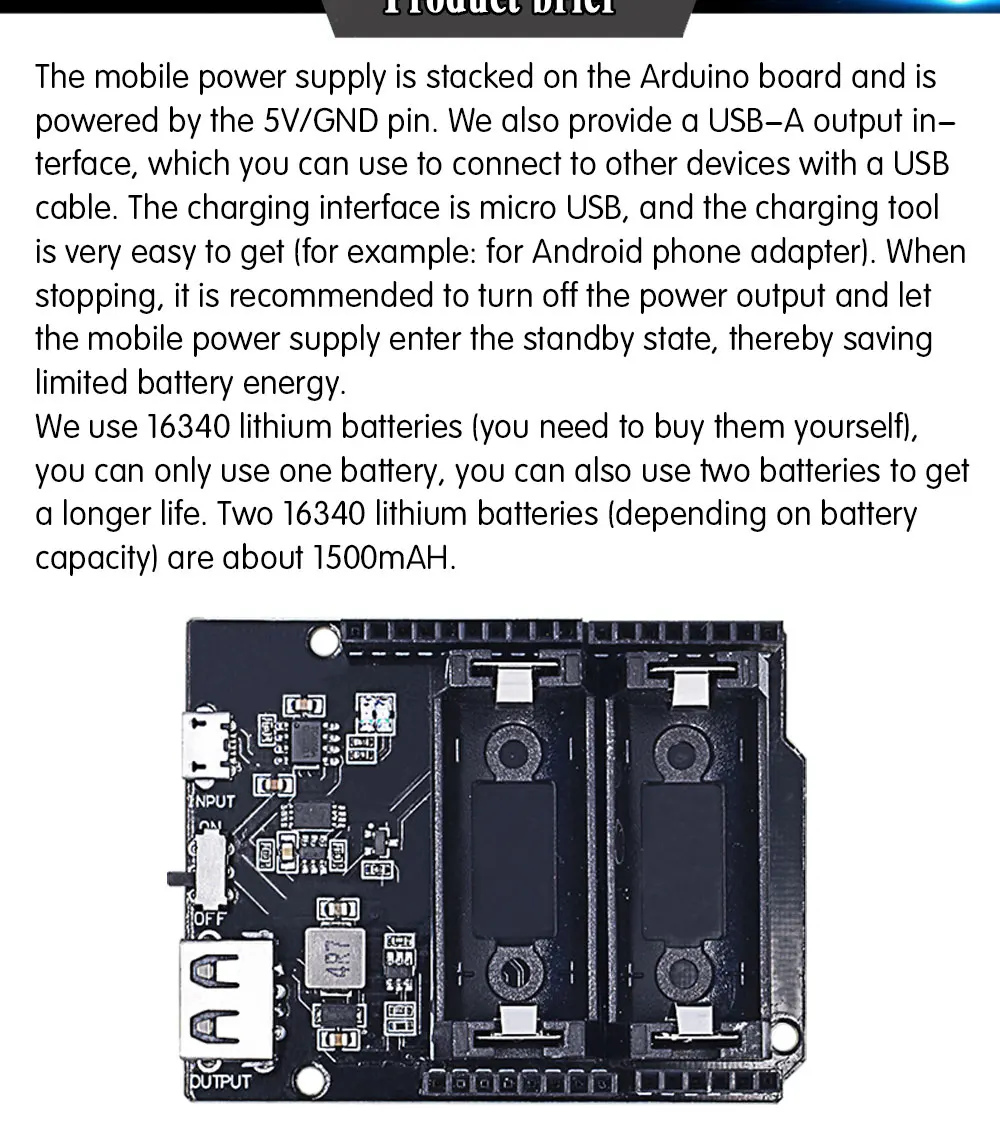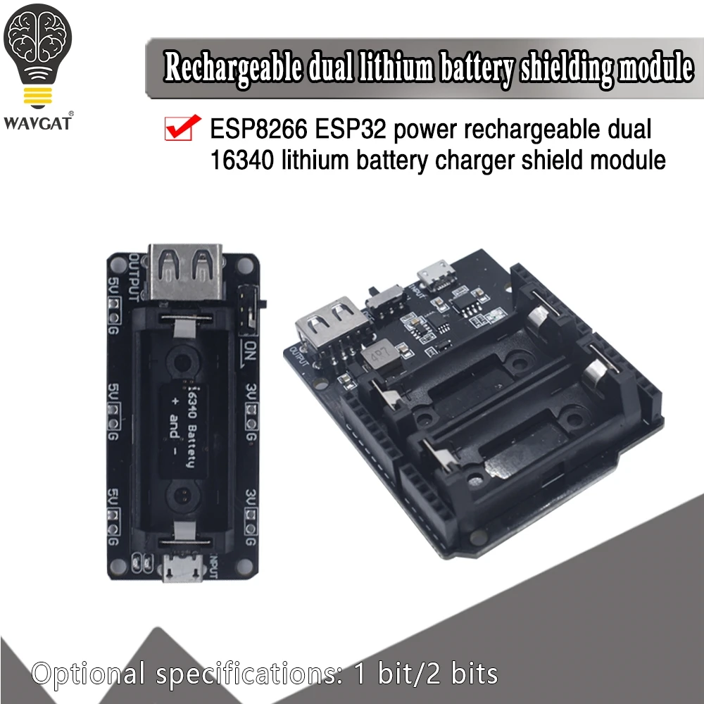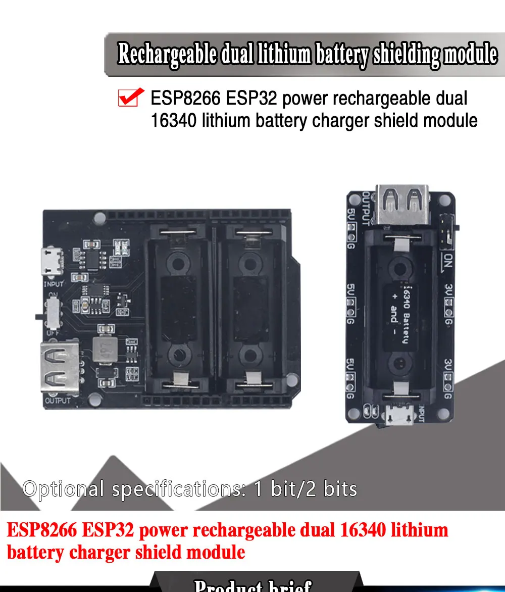 Блок питания ESP8266 ESP32, перезаряжаемый двойной литиевый аккумулятор 16340, защитный модуль для платы внешнего аккумулятора Arduino UNO R3