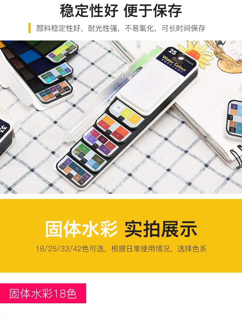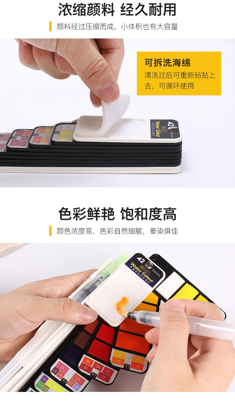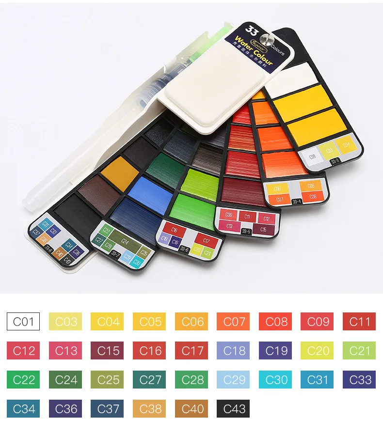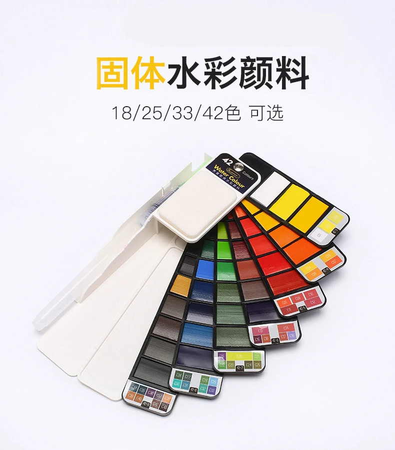 Складной пигмент для путешествий, твердый цвет, с кисточкой для воды, 18253342, Прямая поставка