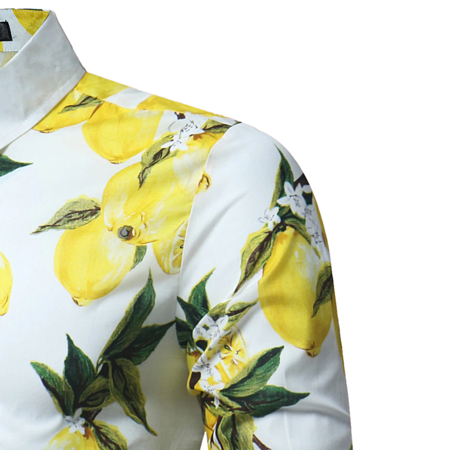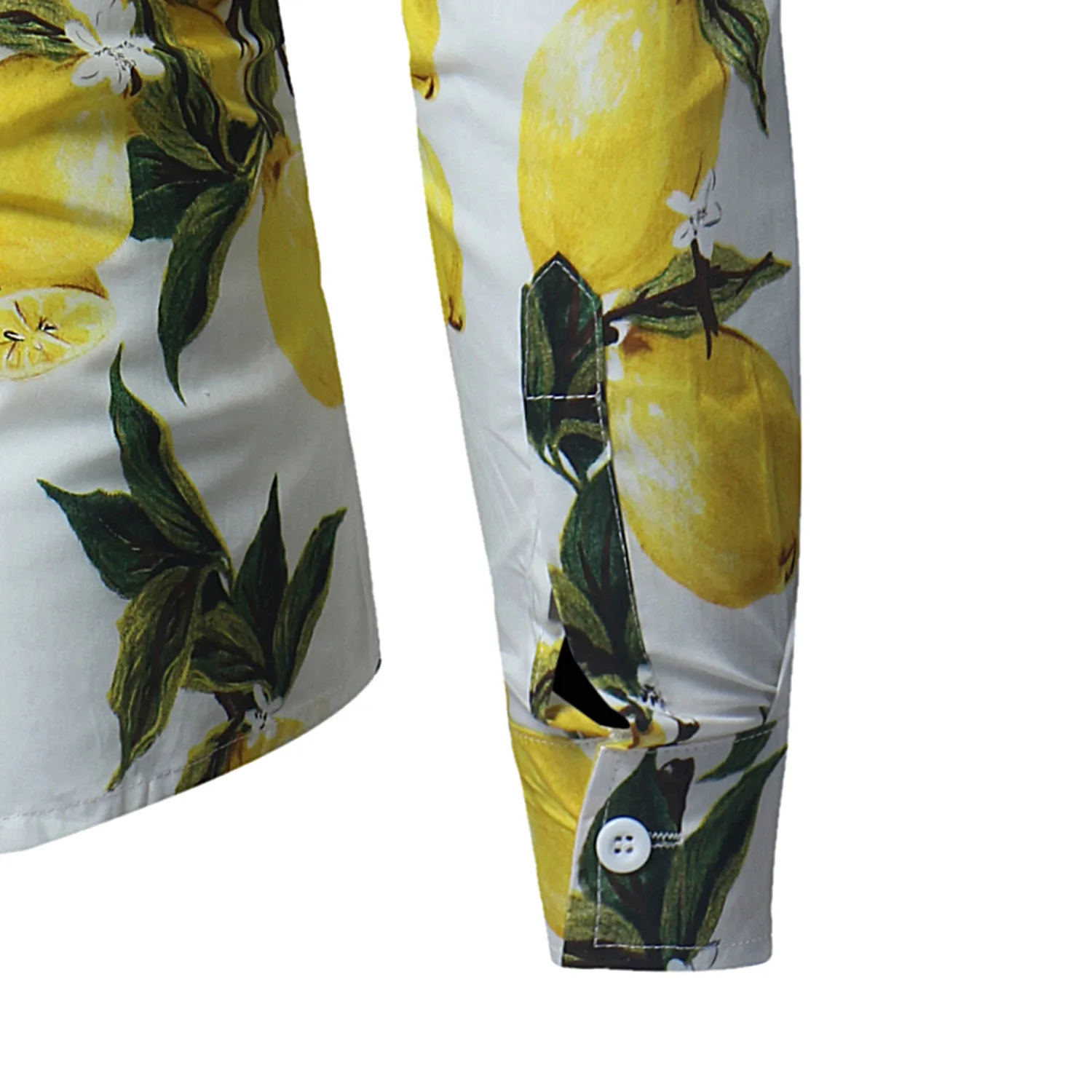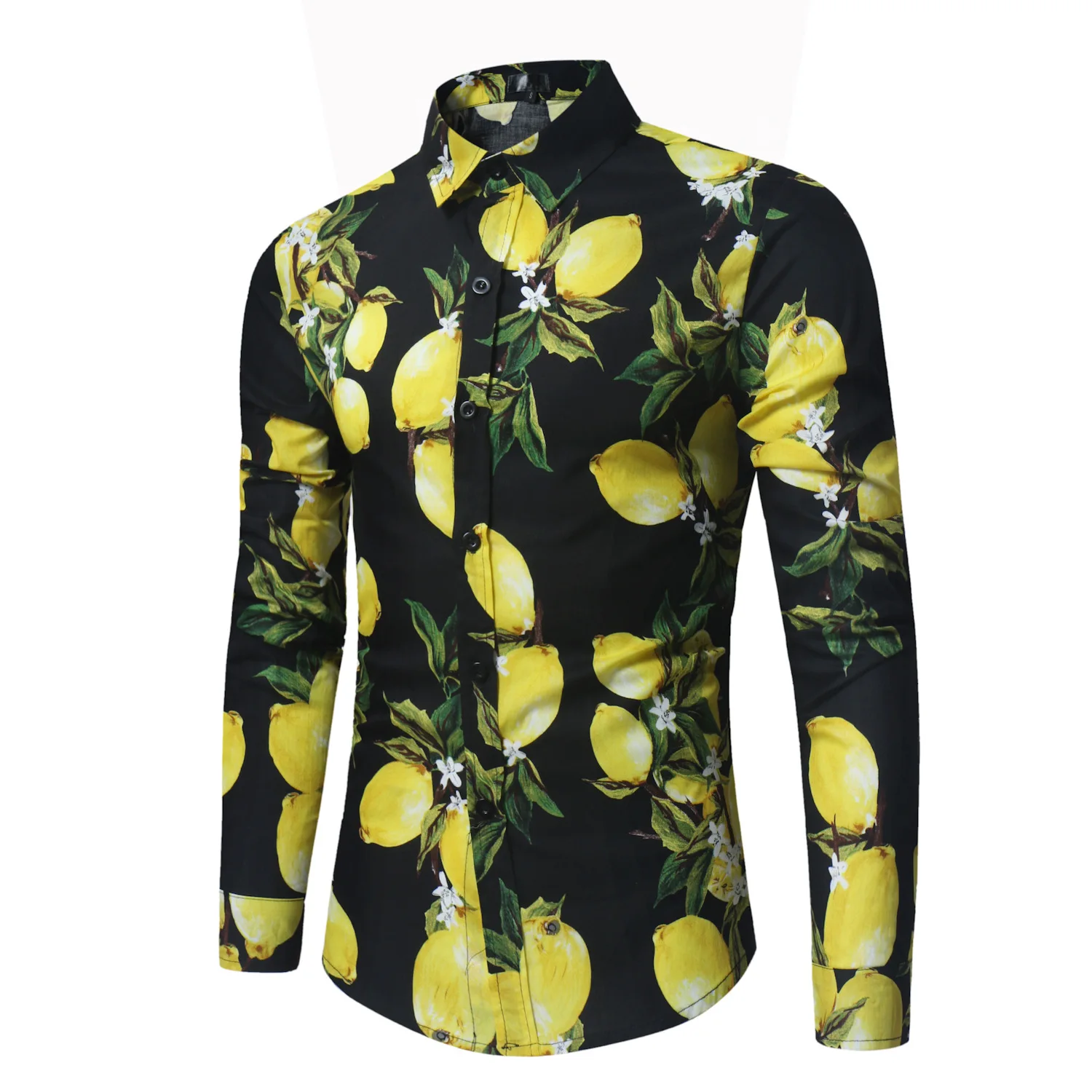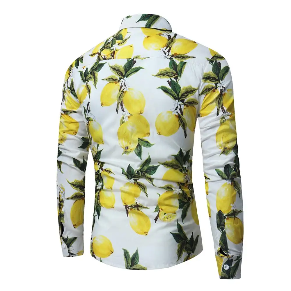 Рубашка мужская приталенная с принтом фруктов и лимона, повседневная и праздничная сорочка с длинным рукавом, на пуговицах, весна-осень