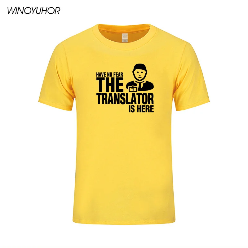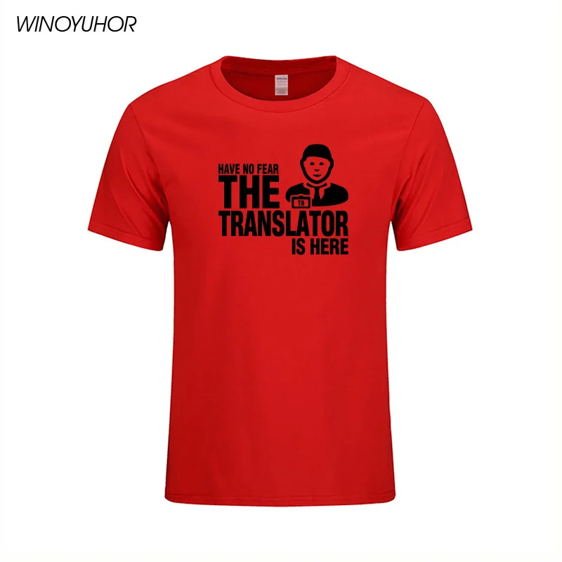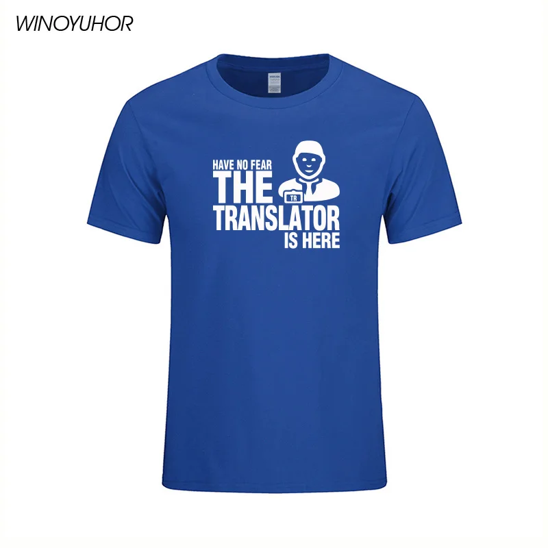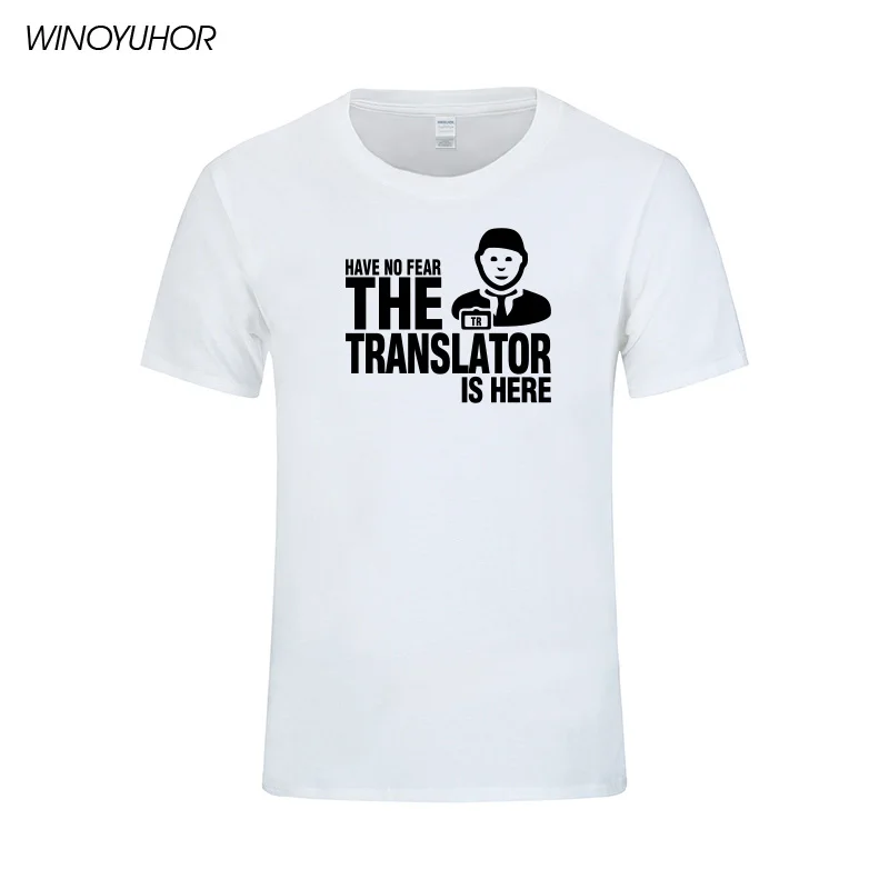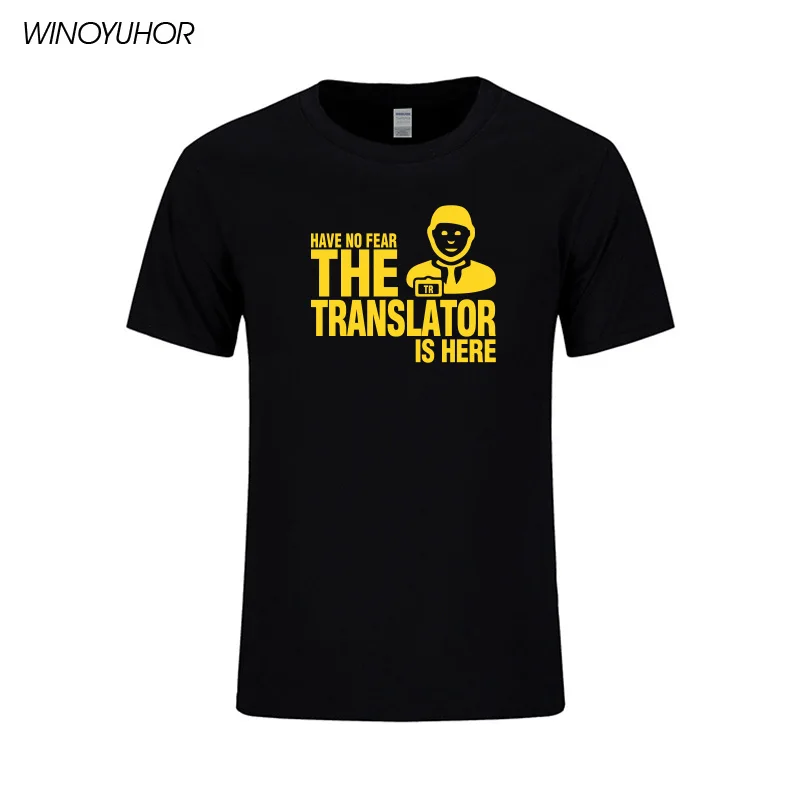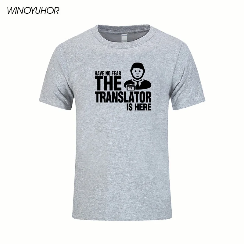 Футболка мужская с принтом переводчик здесь, модная тенниска с короткими рукавами, хлопковая майка с круглым вырезом, лето 2021