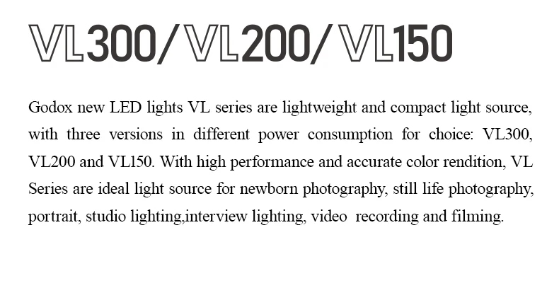 Студийный светильник Godox VL150, VL-150, 150 Вт, 5600K, белый цвет, с непрерывным выходом, поддержка приложения