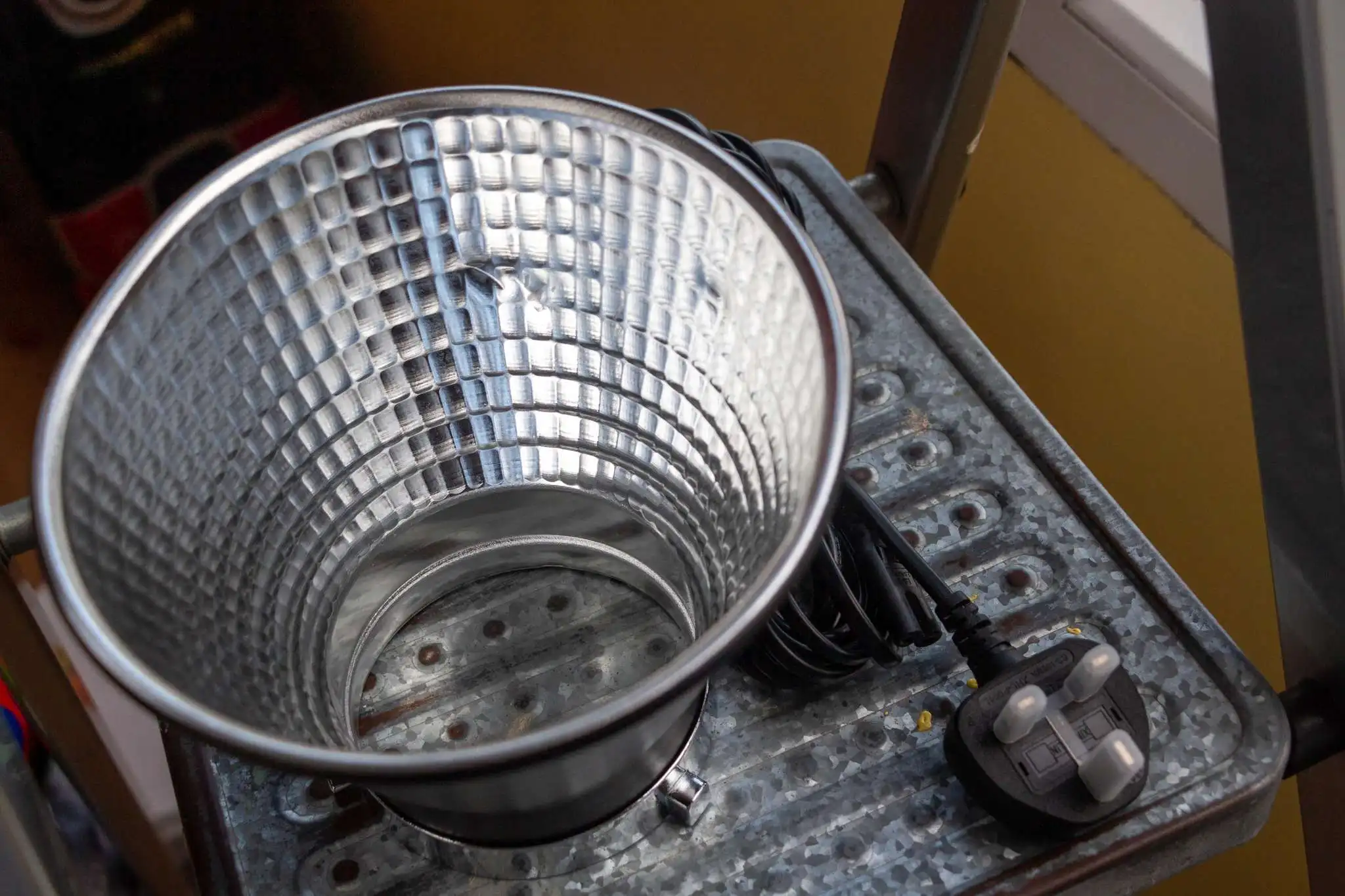 Разочарован службой доставки из Польши. Отражатель был деформирован и внутрь, даже если Транспортная коробка была в очень хорошем состоянии... Так вот как он был доставлен. Они могли видеть это, потому что внутри чемодана для путешествий был BD-04 комплект для барндора. Шнур питания поставляется с вилкой для Великобритании без адаптера для ЕС. Свет превосходный, много мощности. Я думаю, что петля от балласта (блок управления) была изменена-это уже не нейлон, а черный стальной кабель с ПВХ защитой, и он очень безопасен. 10 баллов за этот GODOX.