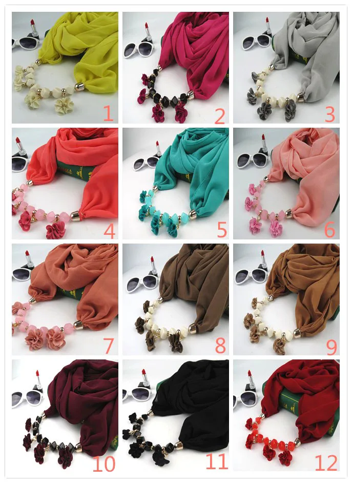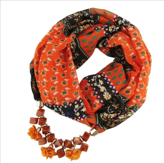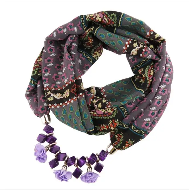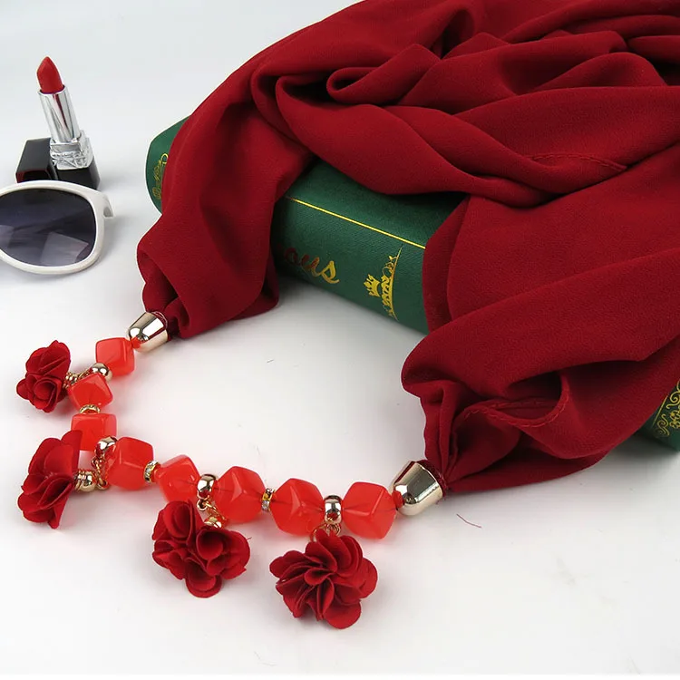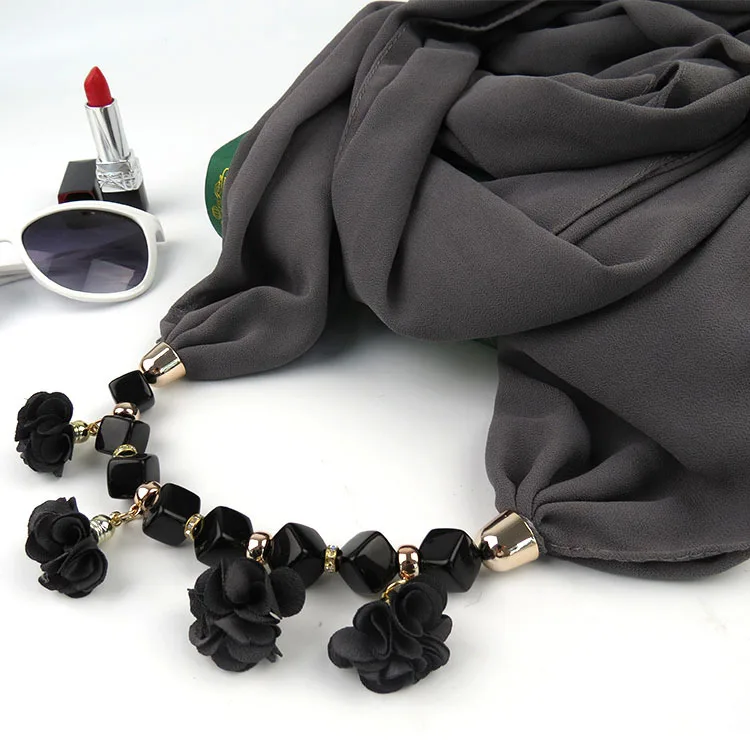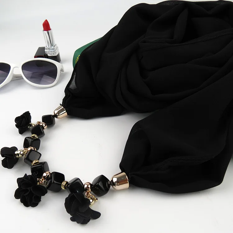 Женское шифоновое кольцо с принтом, разностильное ювелирное ожерелье, цветочный кулон, шарф, аксессуары для женской одежды, хиджабы-шарфы
