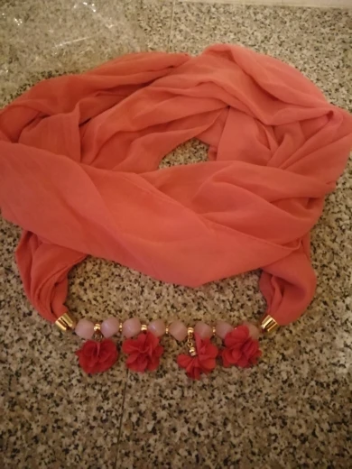 классный шарф коралового цвета.чуть помялса,не страшно можно отпарить.какраз искала что-то к пальто.