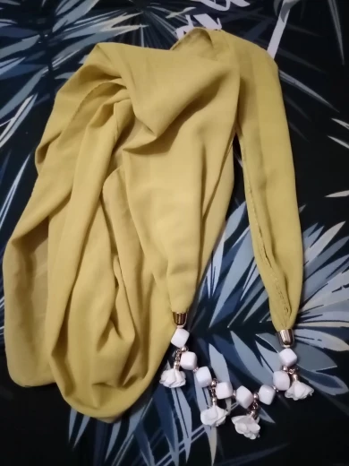 Шарф симпатичный, но цвет не такой как на фото. На фото бирюзовый, а в реальности зелёный, а камушки голубые, резко отличаются. Выглядит чуть хуже, чем хотелось.Качество шарфа хорошее, Так что вцелом осталась довольна.