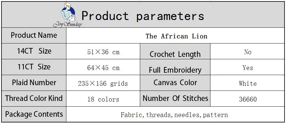 Набор для вышивки крестиком, с изображением Льва, 14ct, 11ct, игла для полотна