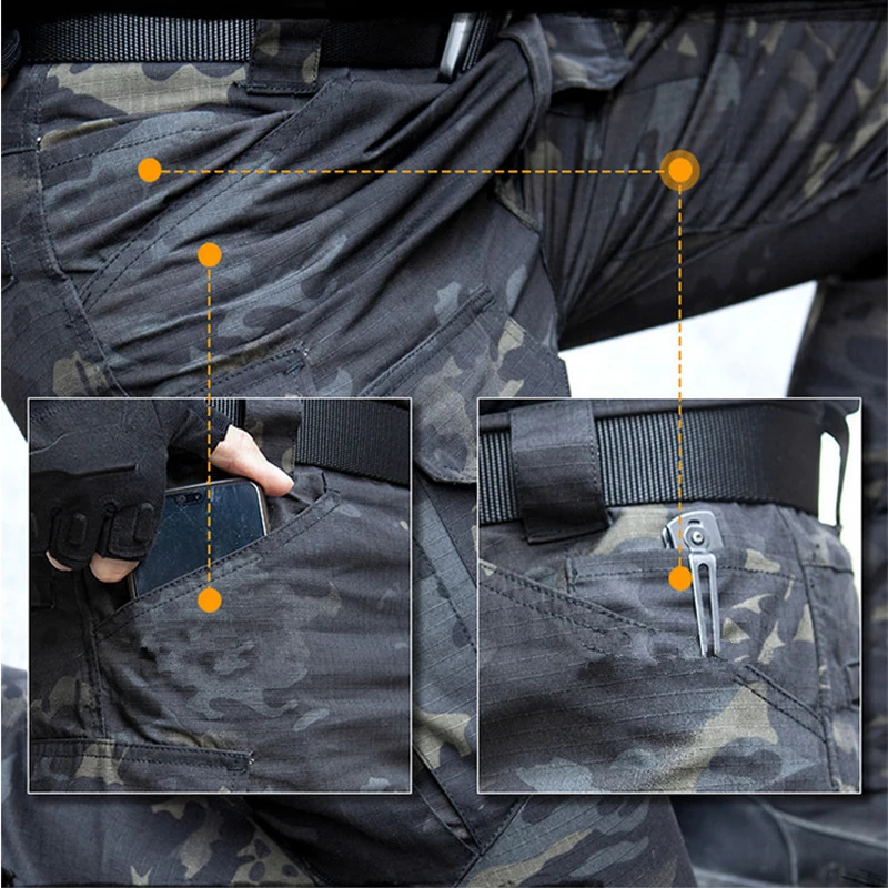 Тактические брюки-карго в стиле милитари, мужские Стрейчевые брюки SWAT Combat Rip-Stop с множеством карманов, армейские длинные брюки, эластичные хлопковые повседневные рабочие брюки