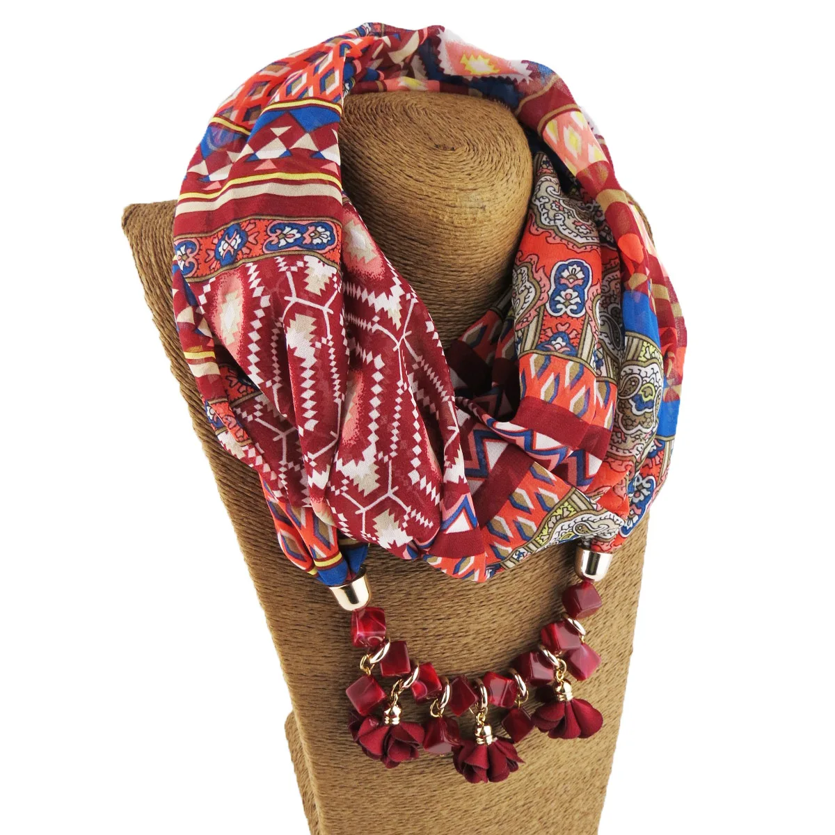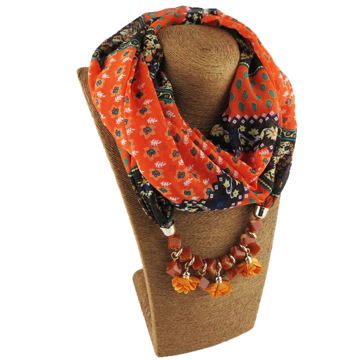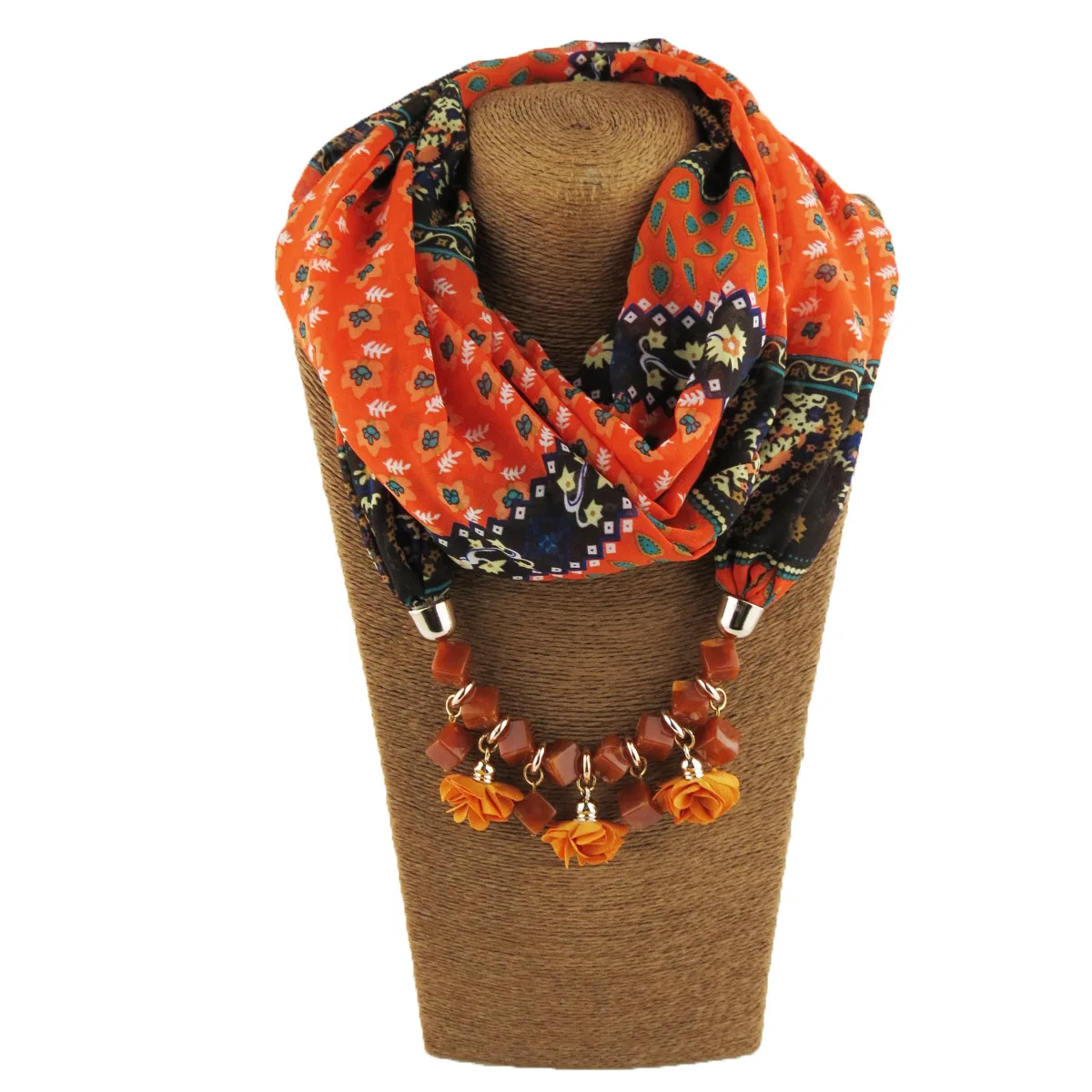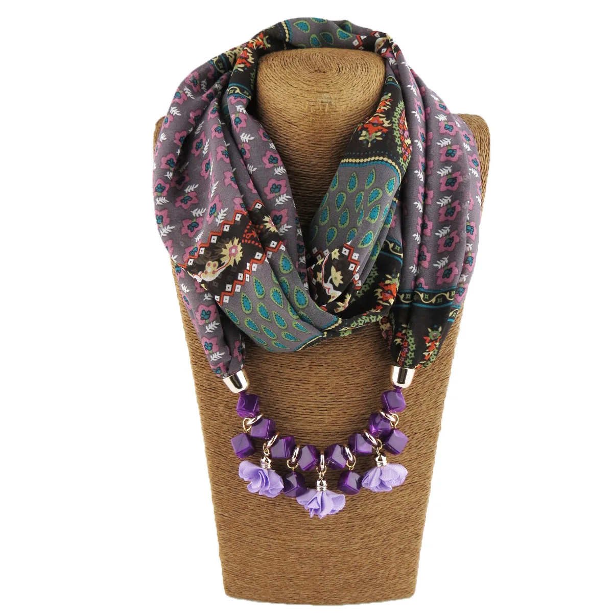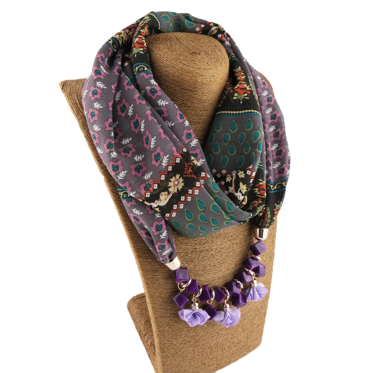 Женский весенне-осенний модный шифоновый шарф-кольцо в европейском и американском стиле многофункциональное ожерелье с цветочным Кулоном Шарф Шарфы на голову хиджаб
