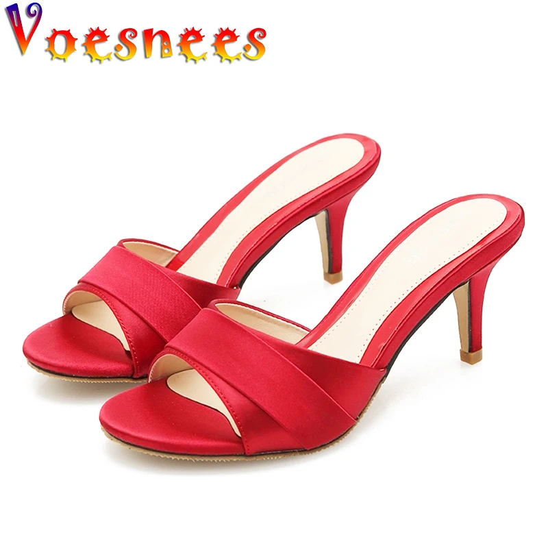 Женские шлепанцы Voesnees, Новинка лета 2020, пикантная женская обувь на высоком каблуке 8,5 см, Сандалии больших размеров 43, пляжная обувь для девушек, сланцы