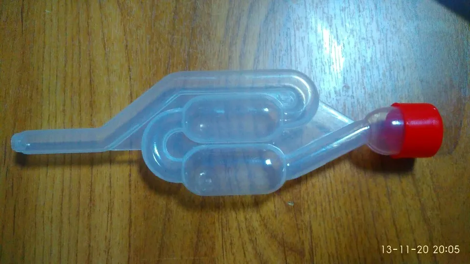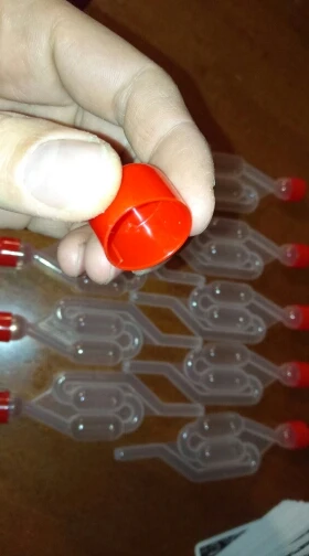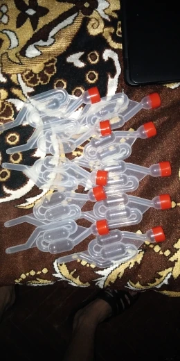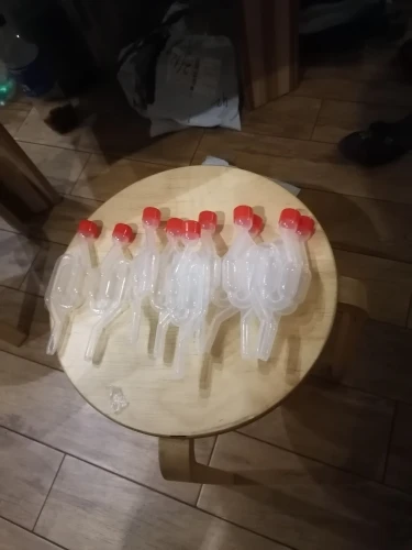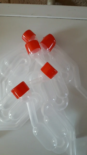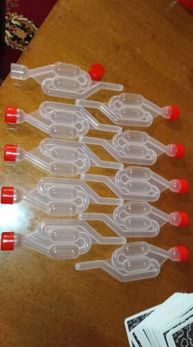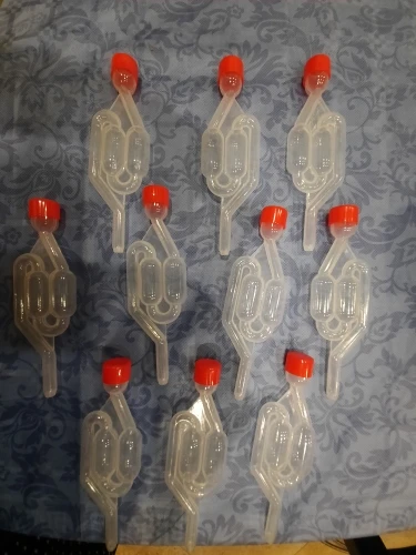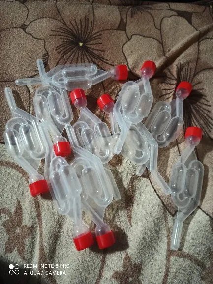 Беру такие гидрозатворы второй раз для домашнего вина. Первый раз взяла пару штук на пробу. Теперь хватит на все бутыли))) Очень удобные. Не надо ставить рядом дополнительные емкости и бояться их задеть. Фото не прикладываю: внешне такие же, как на фото продавца, размер соответствует. Посылка шла в Калининград чуть больше месяца.