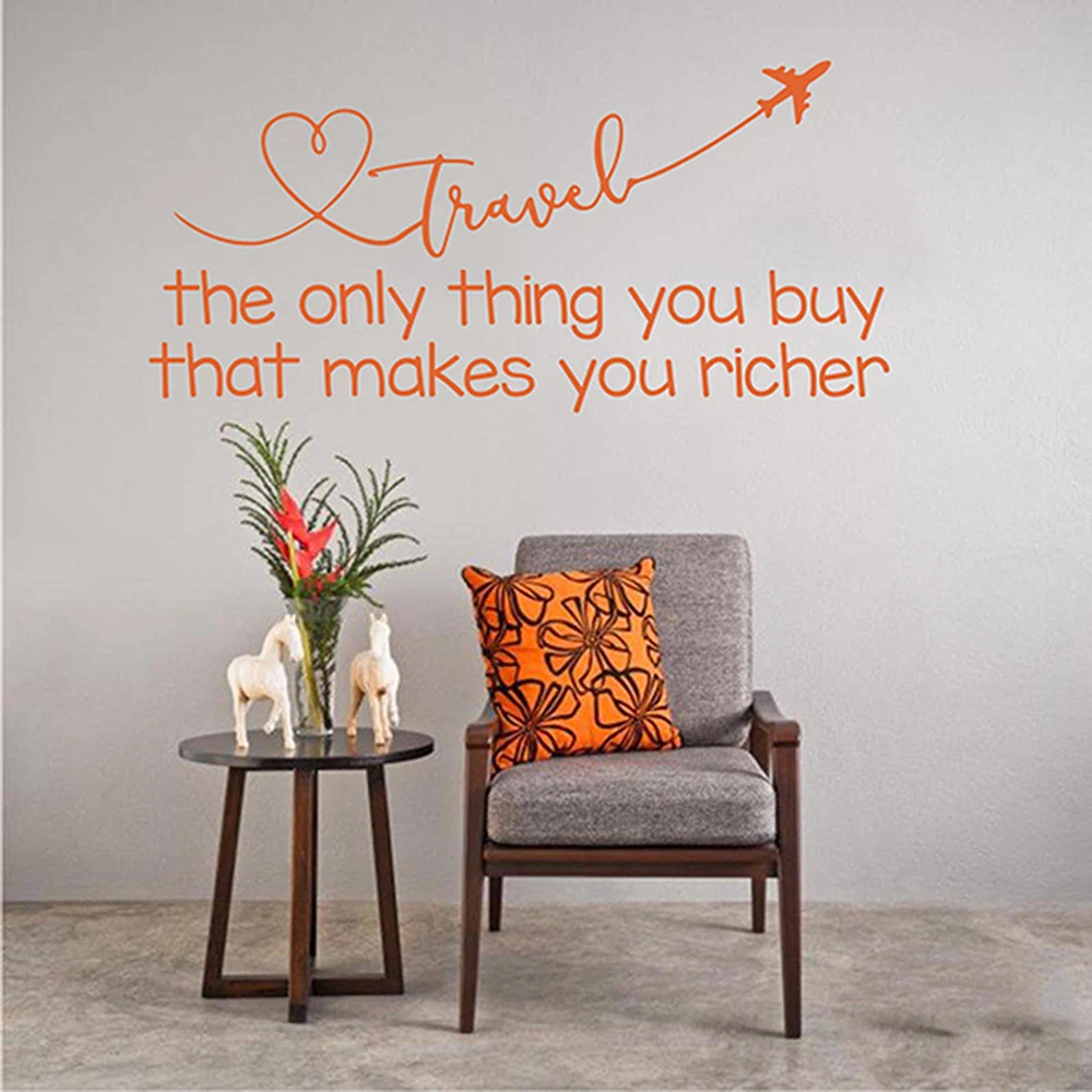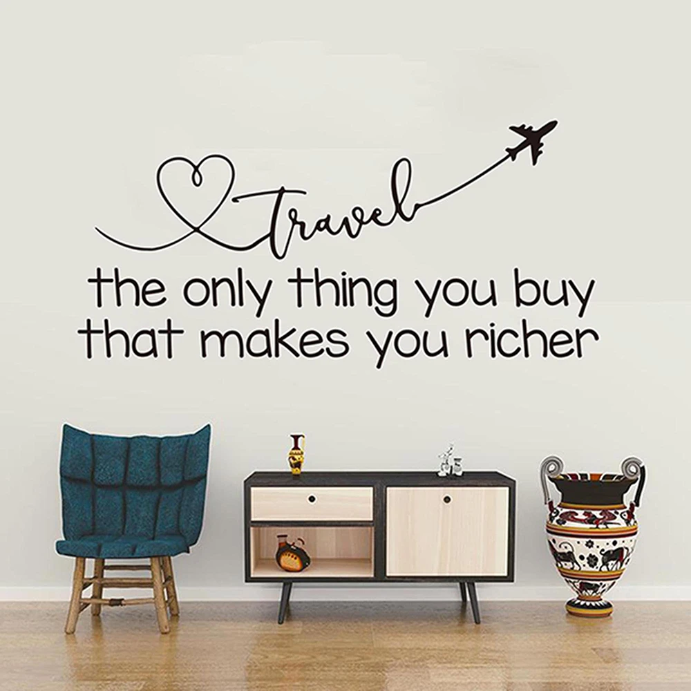 Дорожная Наклейка на стену в виде самолета с цитатами для путешествий единственная вещь сделает вас богаче путешествие Настенная Наклейка виниловый Декор для спальни X543
