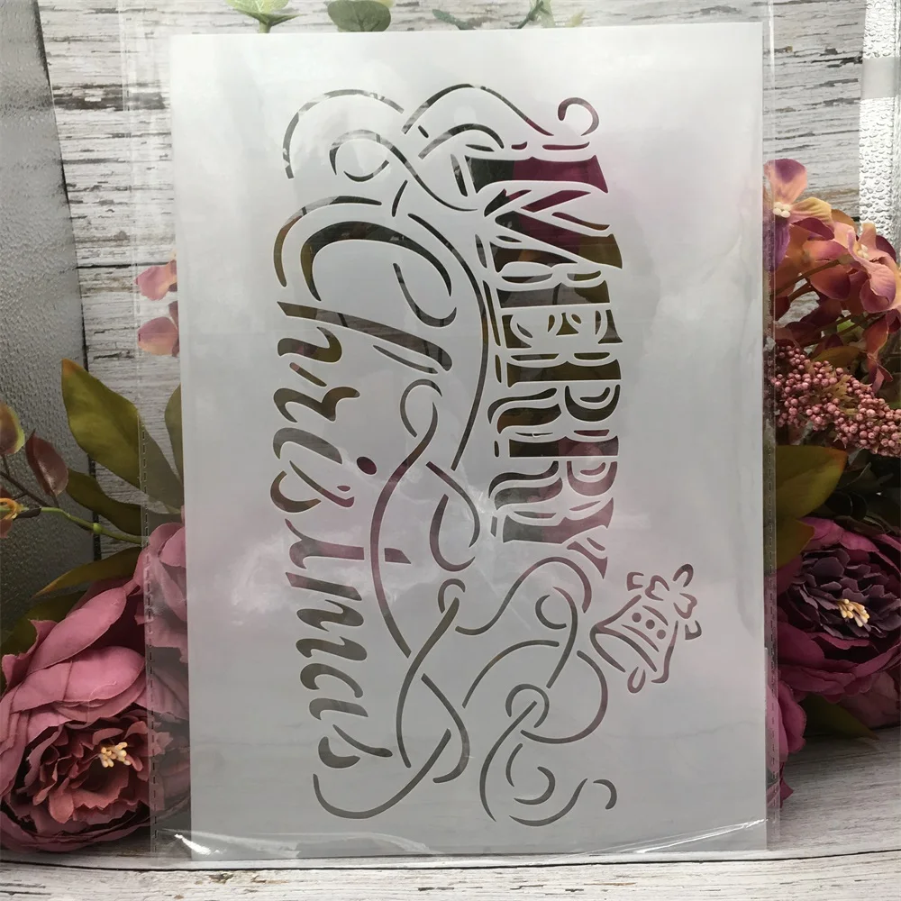 29*21cm A4 Merry Christmas Words DIY Layering Stencils Wall Painting Scrapbook Coloring Embossing Album Decorative Template