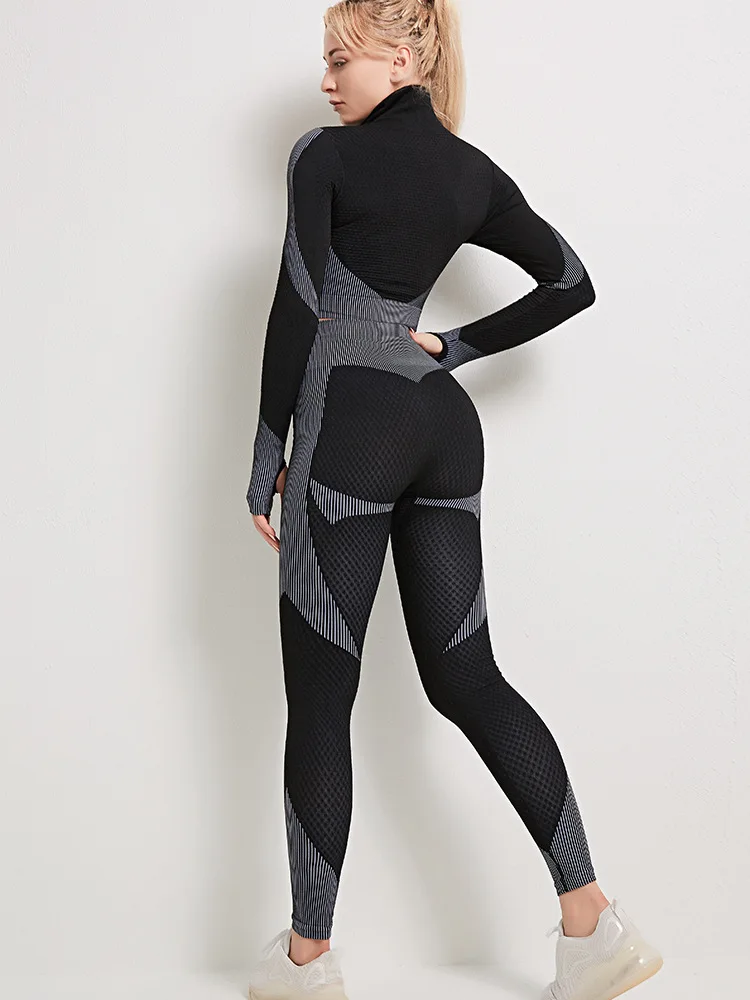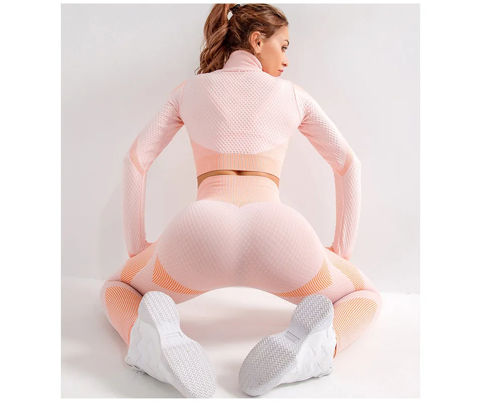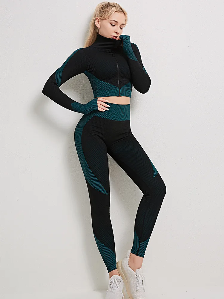 Для женщин Yoga спортивный комплект для тренажерного зала, состоящий из тренировки с длинными рукавами и круглым вырезом на молнии спереди топ, футболка + крест-накрест бюстгальтер + Высокая Талия Леггинсы плотные спортивные костюмы для йоги
