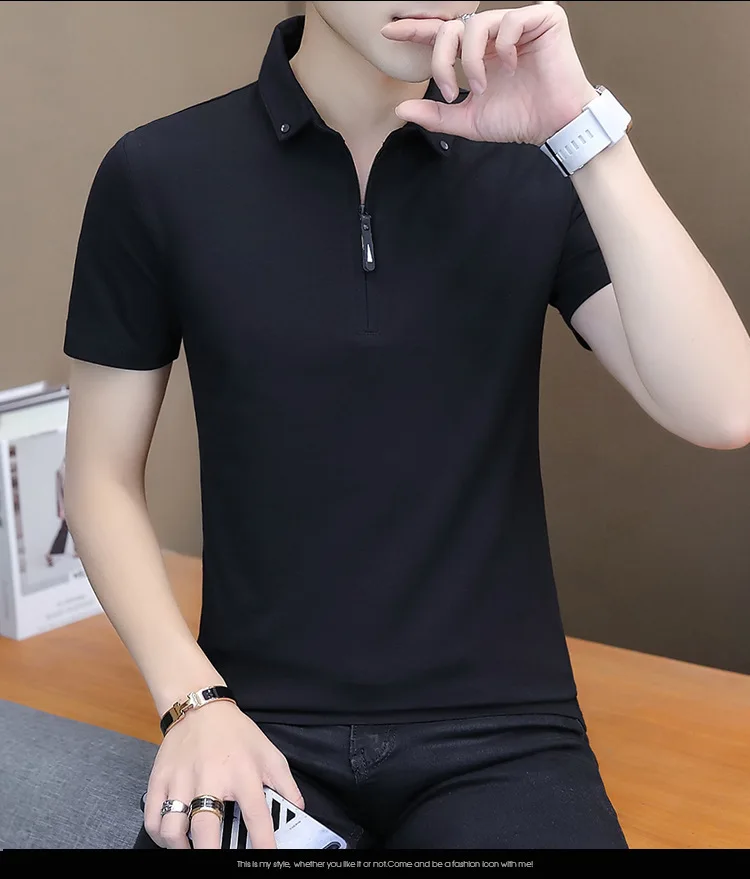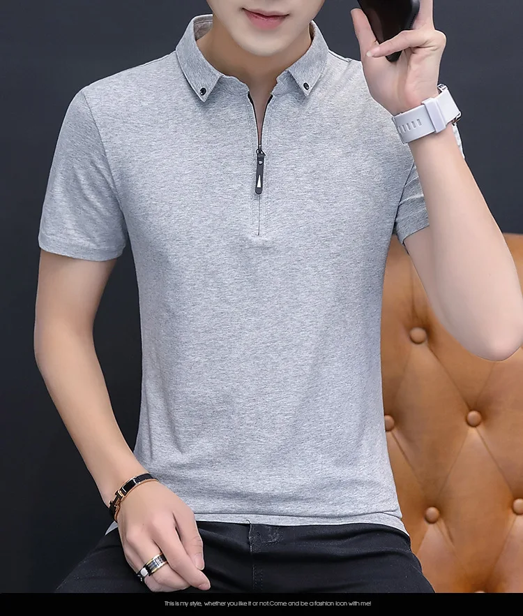 Мужская хлопковая рубашка-поло, Однотонная рубашка-поло с отложным воротником, лето 2020