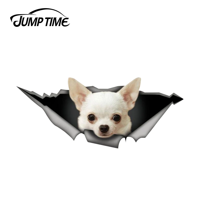 Время прыжка 13 см x 5,5 см белый наклейка с изображением Чихуахуа 3D ПЭТ графическая виниловая наклейка на окно автомобиля ноутбука бампер птица наклейки на автомобиль
