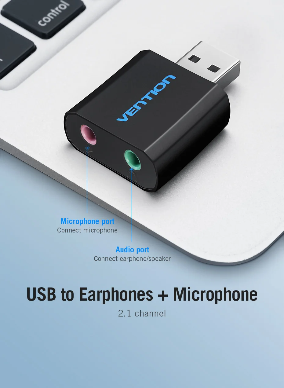 Внешняя звуковая карта Vention Mini USB, адаптер для наушников 3,5 ...