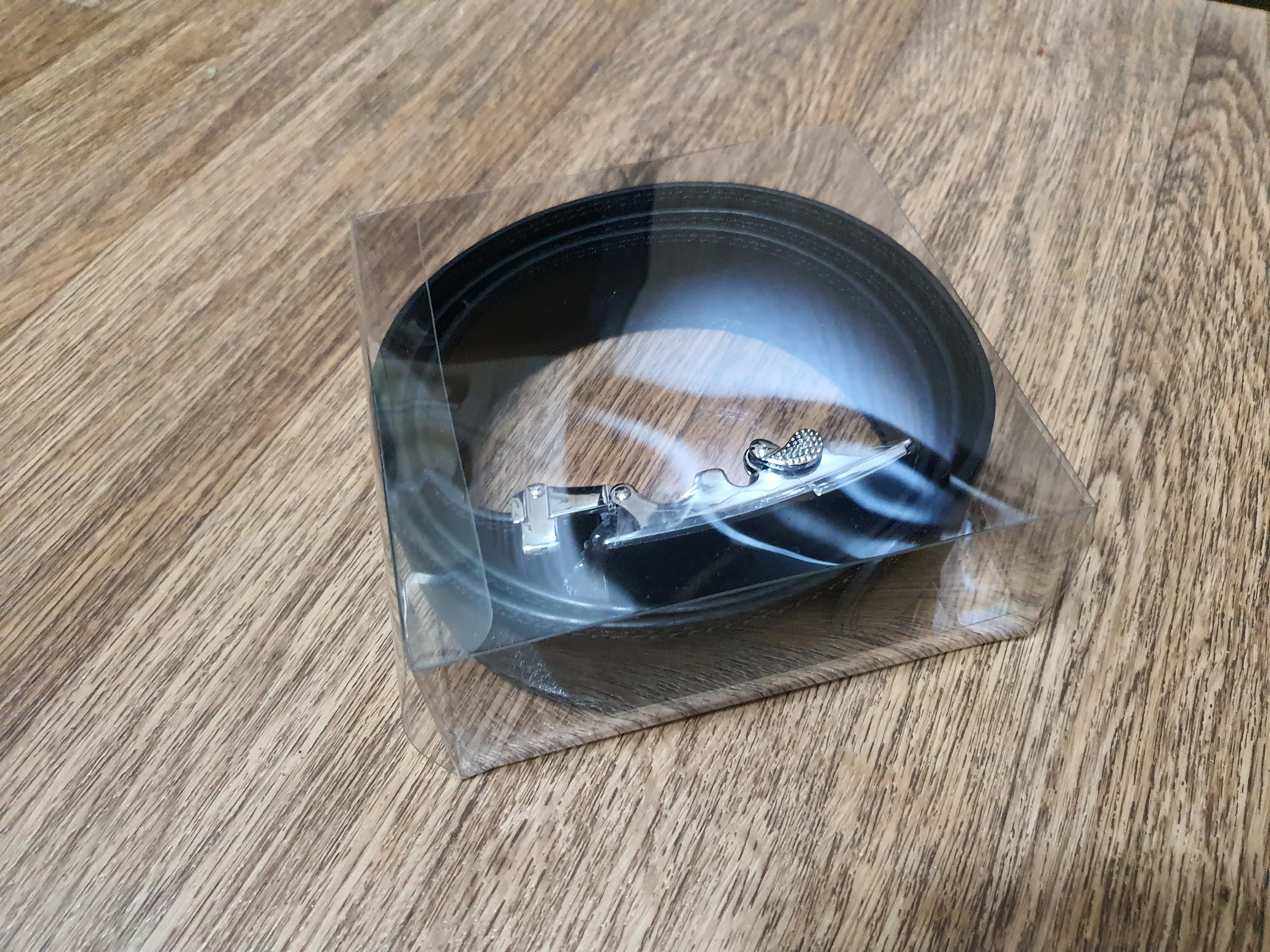 Получил заказ через 13 дней. Быстрая отправка, быстрая доставка. Упаковано в картонную коробку и в прозрачную упаковку. На пряжке ремня защитная плёнка. Ремень имеет интересную конструкцию фиксации. Работает. Нужно правильно указывать размер при заказе. Посторонних запахов нет. Товар полностью соответствует описанию. Продавца рекомендую.