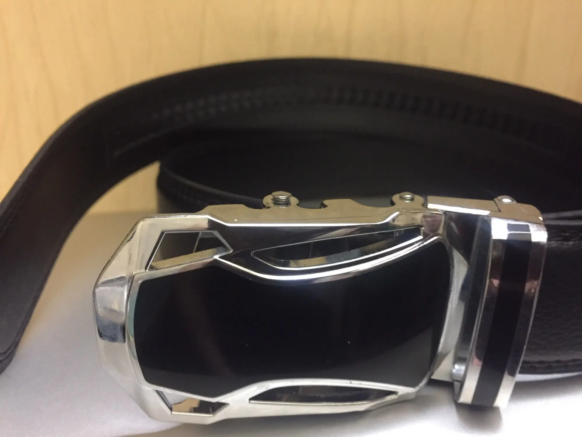 Ремень конечно, с автоматической пряжкой, но точно не из кожи.Лопнул пополам через 10 дней использования.Не рекомендую для покупки.