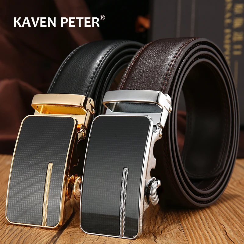 Ремень мужской из натуральной кожи, с автоматической пряжкой