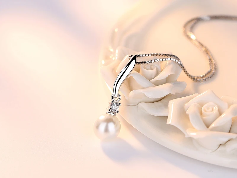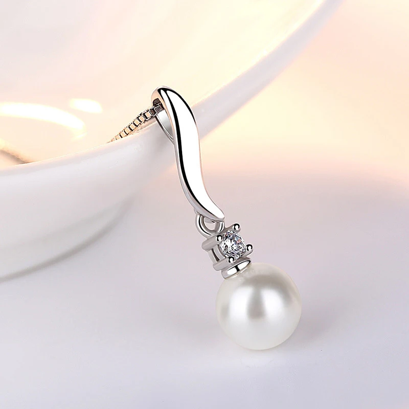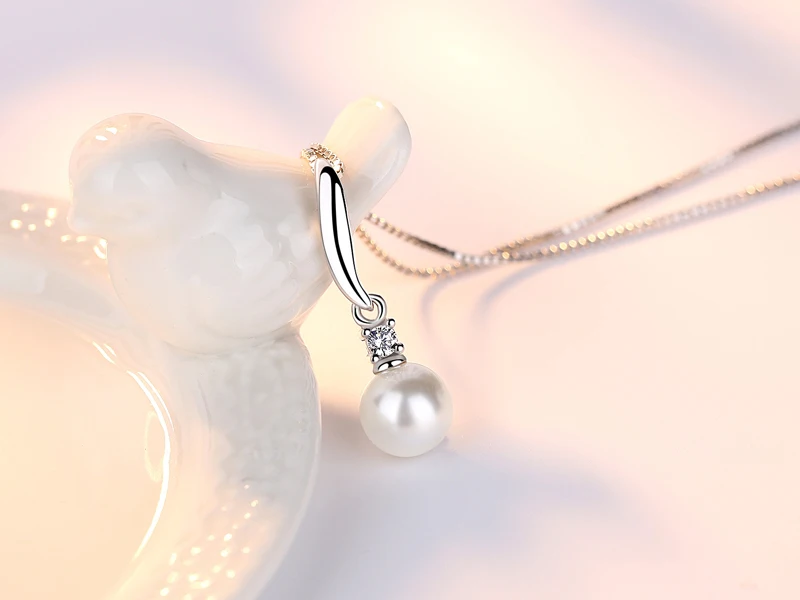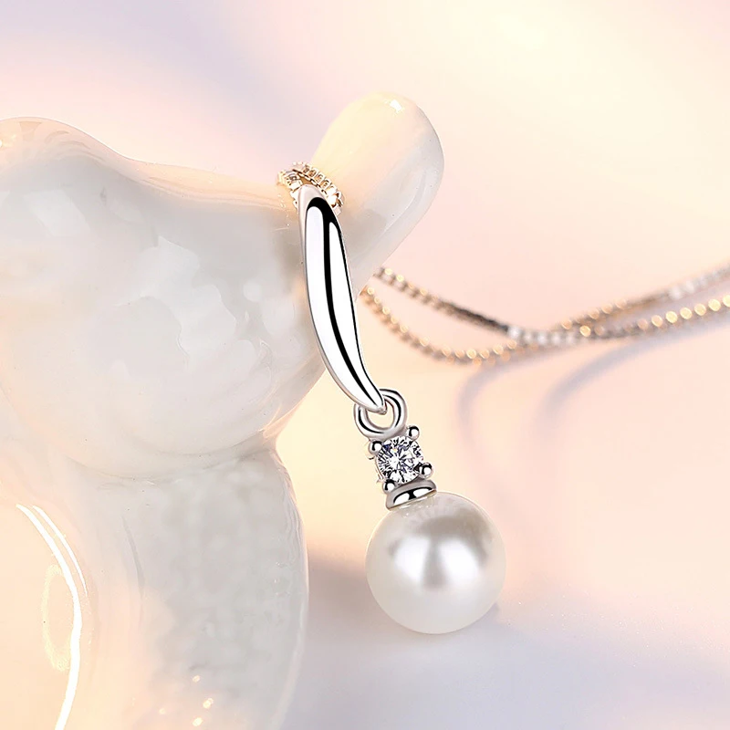 Ожерелье женское из серебра 925 пробы с жемчужным цирконием, стразы