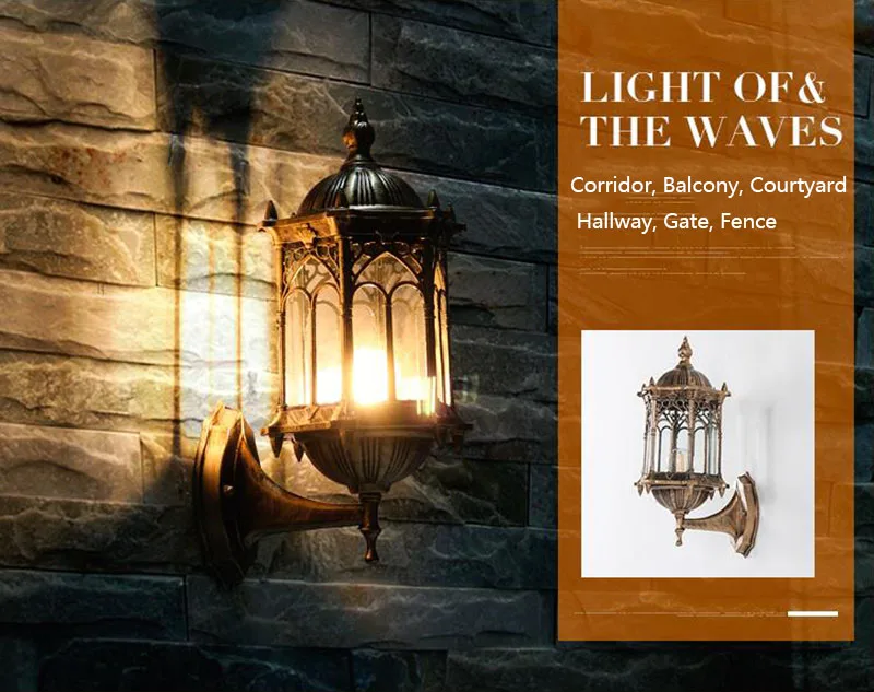 Алюминиевый настенный светильник садовый фонарь бра E27 Открытый водонепроницаемый светильник внешний светильник lampu столовый Антик стеклянный абажур
