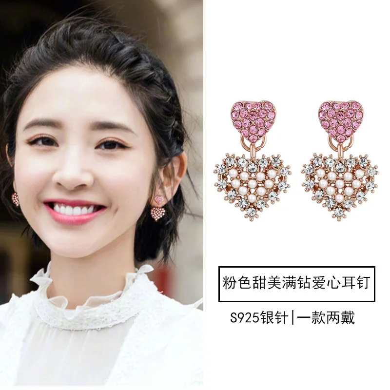 Модные розовые серьги с жемчугом, серьги с кристаллами, висячие серьги для женщин, циркон, сладкий венок, висячие серьги, ювелирное изделие, подарок