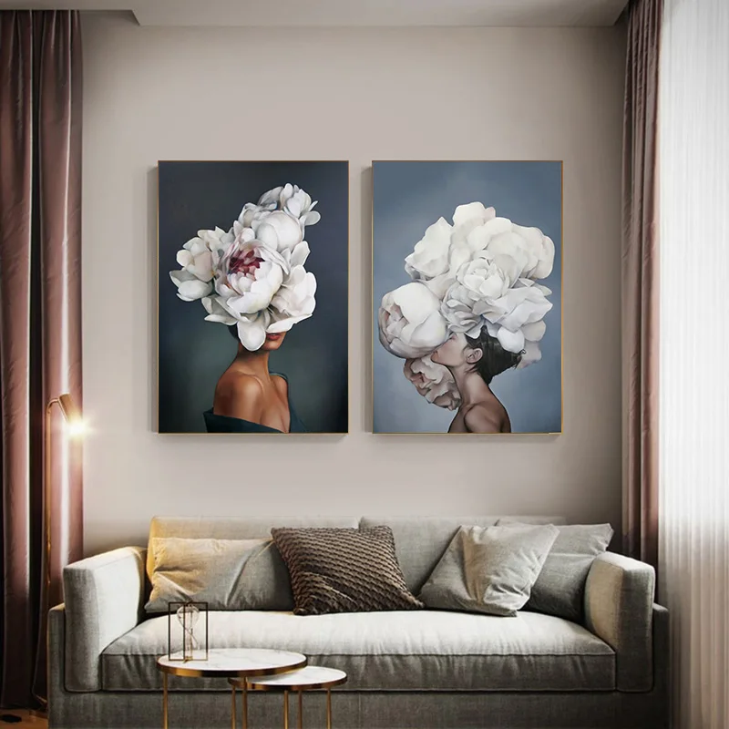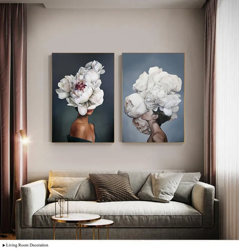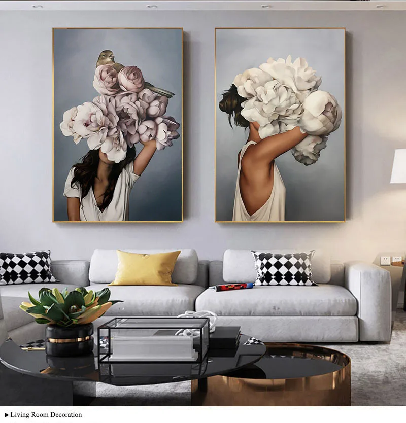 Цветы перо Женщины абстрактная картина холст абстрактная стена искусство плакат печать Современная декоративная картина украшение для гостиной