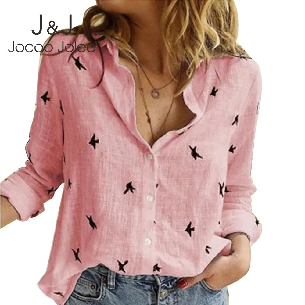 Блузка Jocoo Jolee женская из хлопка и льна, свободная винтажная уличная одежда с длинным рукавом и принтом птиц, топ, туника, весна-лето