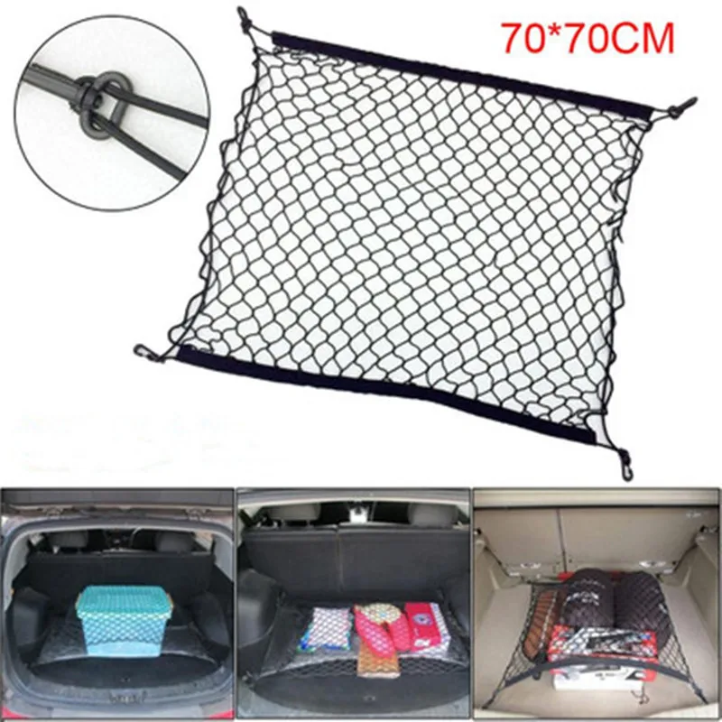 Автомобильная нейлоновая сетка для груза с 4 пластиковыми крючками, универсальный эластичный сетчатый органайзер для хранения в багажнике автомобиля, регулируемый задний пикап, гамак в стиле крюк для автомобиля, растягивающийся, 70 см