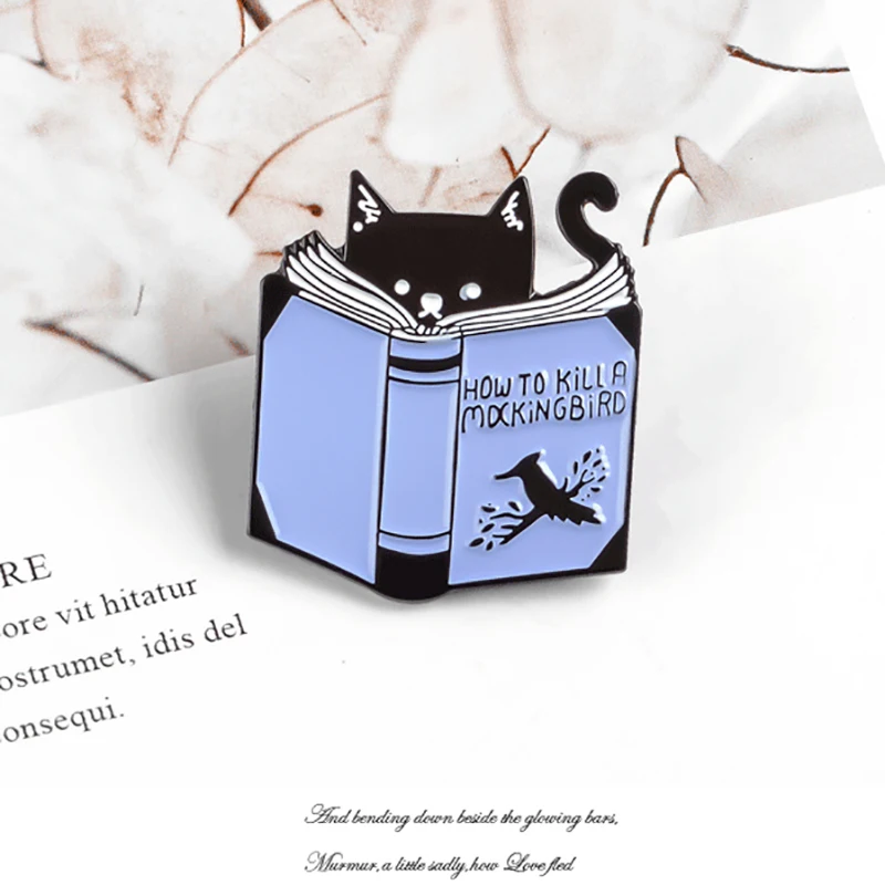 Книга для чтения Кот Эмаль Булавка как убить насмешки Птица значок брошь мультфильм значки с животными Ювелирные изделия Подарки