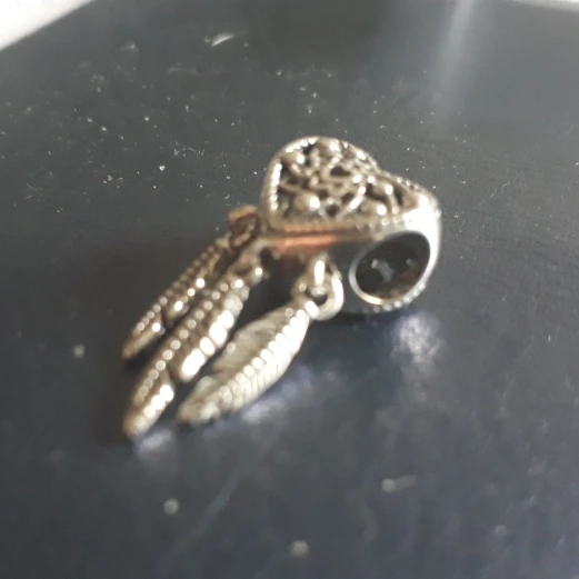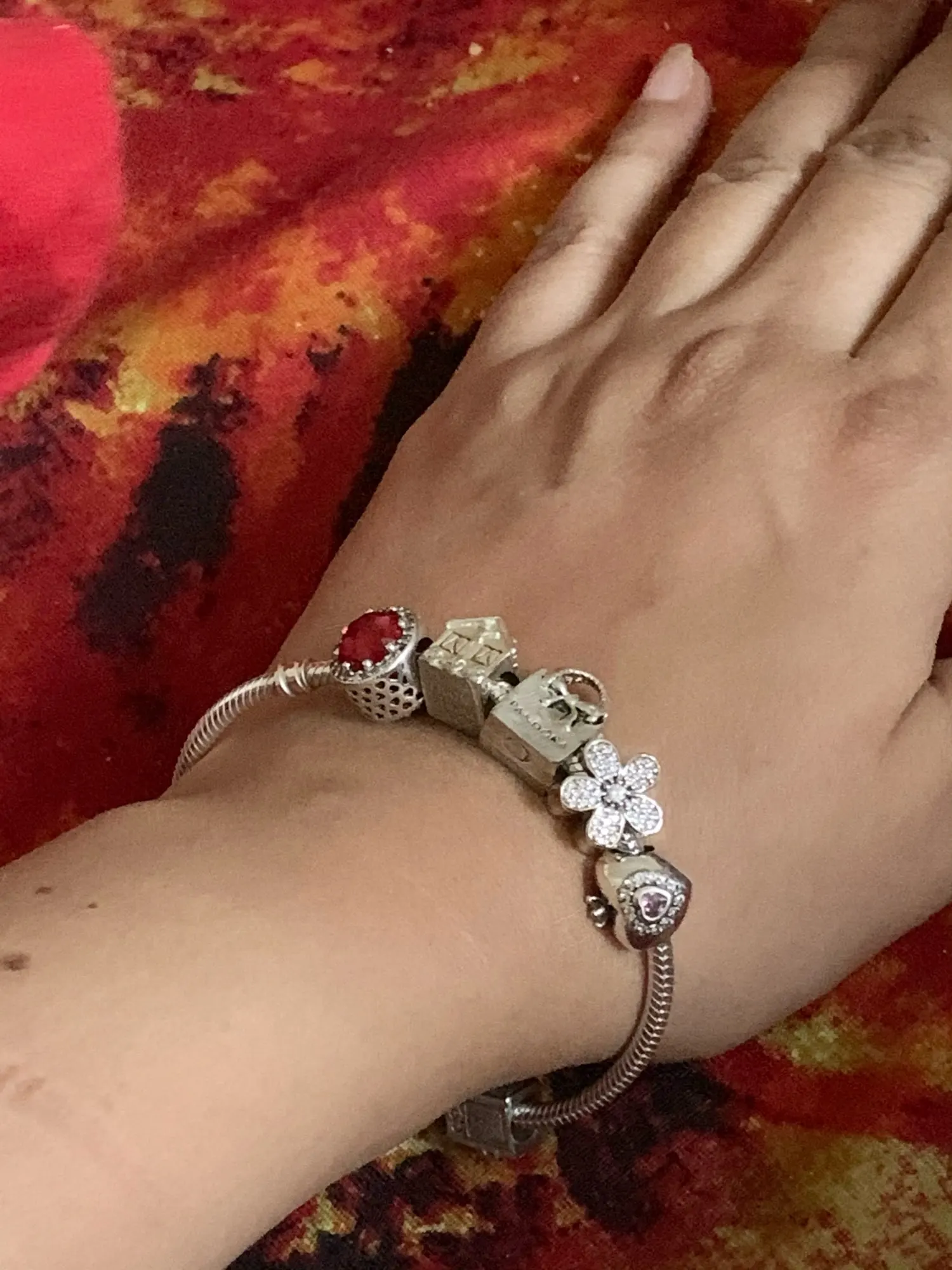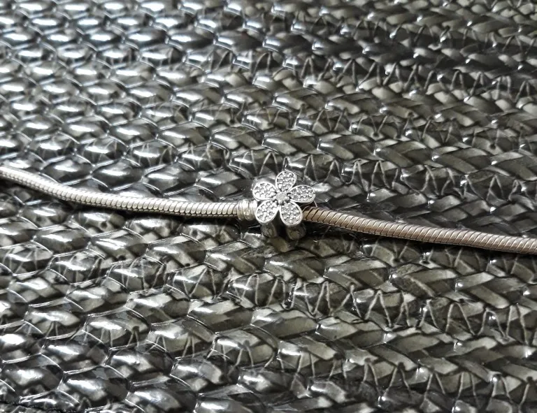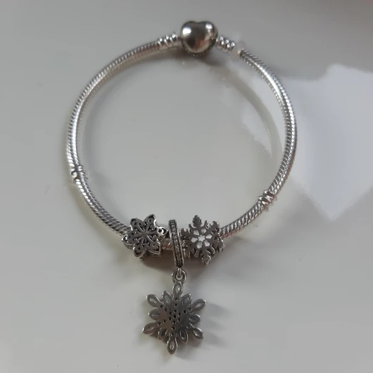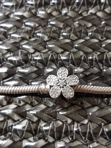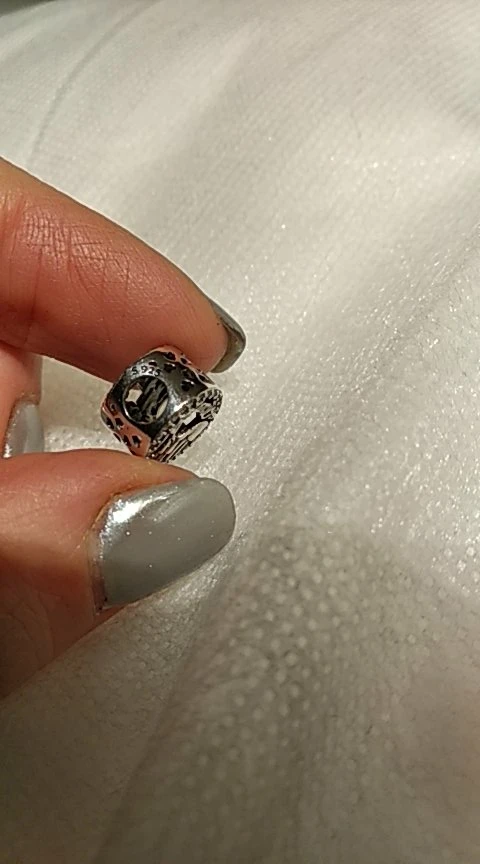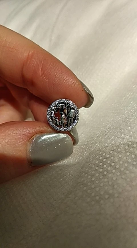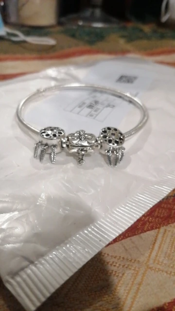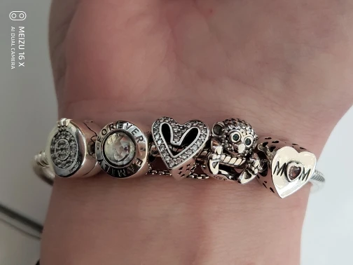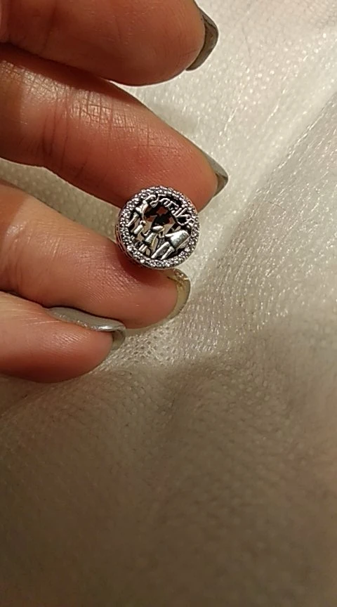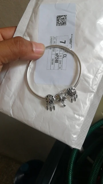 Очарование очень хорошо сделано, хорошая отделка и аккуратная отделка. Я не думаю, что это серебро, оно имеет странный металлический запах по прибытии, но с этой ценой мы не можем ожидать, что это серебро. Я держу его для душа, на данный момент он не почернел. Это выглядит намного больше, чем другие подвески, и браслет на моей фотографии, но это потому, что мой браслет-Пандора, который тоньше. Доволен своей покупкой.