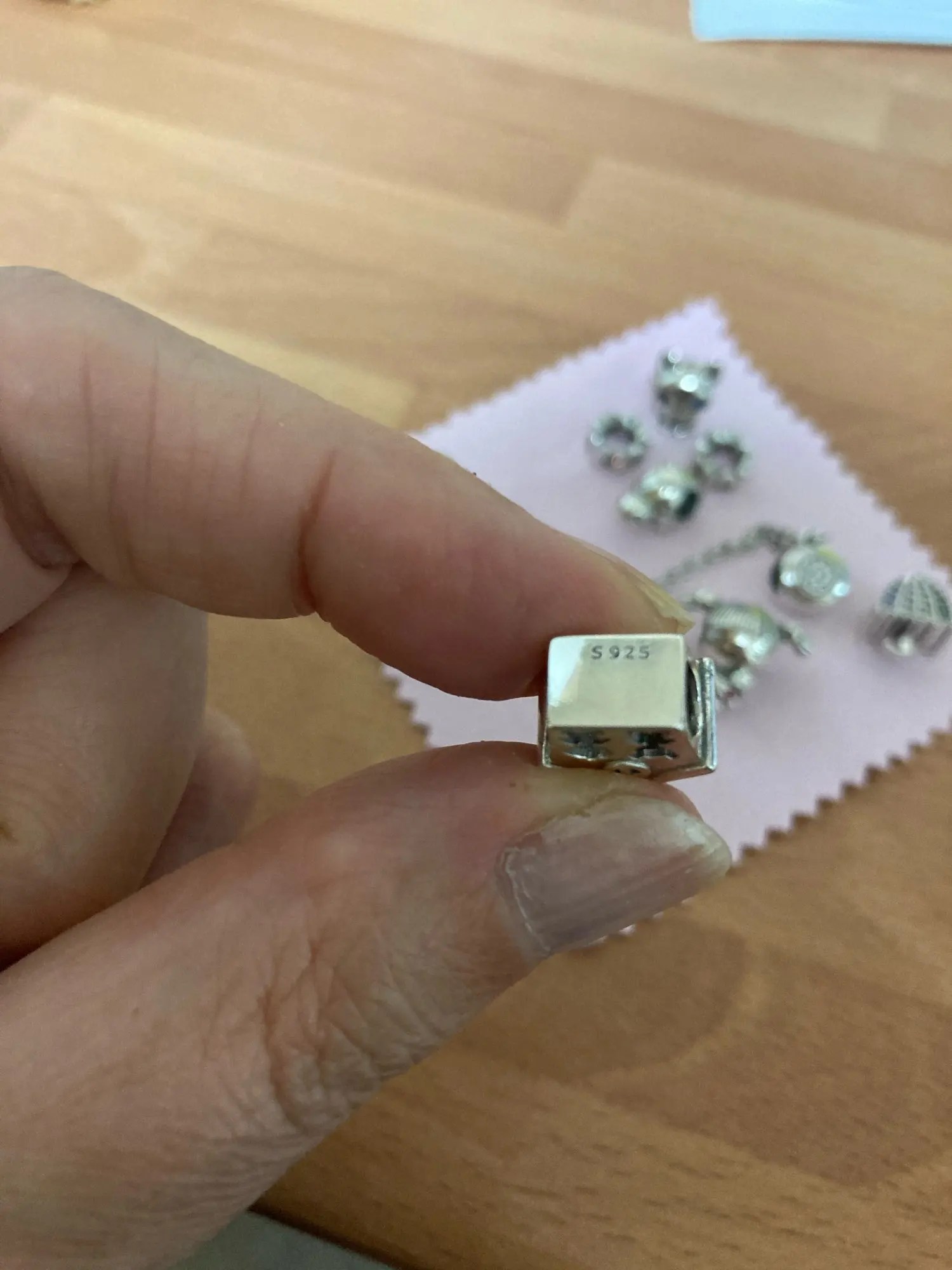 Очень милые шармы. Издалека выглядят как оригинал. Камень красиво искрится. Сделаны аккуратно. Мне понравились.