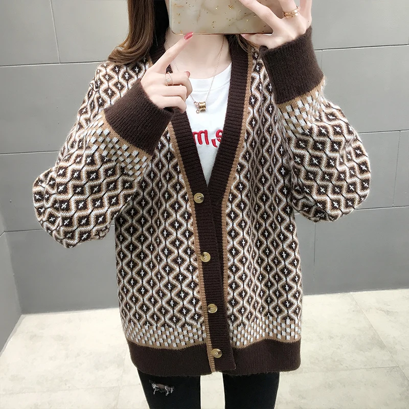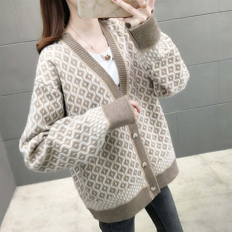 Женский вязаный кардиган, повседневный теплый длинный свитер, весна 2021