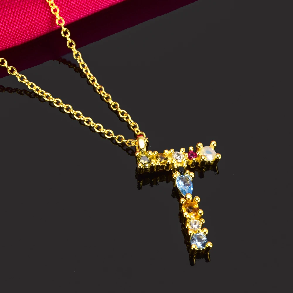 Kikichicc, Стерлинговое Серебро 925 пробы, золотой инициал, алфавит, 26 букв, имя, кулон, M, ожерелье для женщин, красочные хрустальные ювелирные изделия