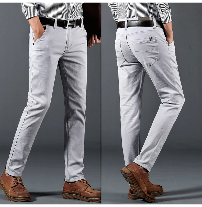 Брюки мужские прямые эластичные, 6 цветов, серые, белые, хаки, темн...