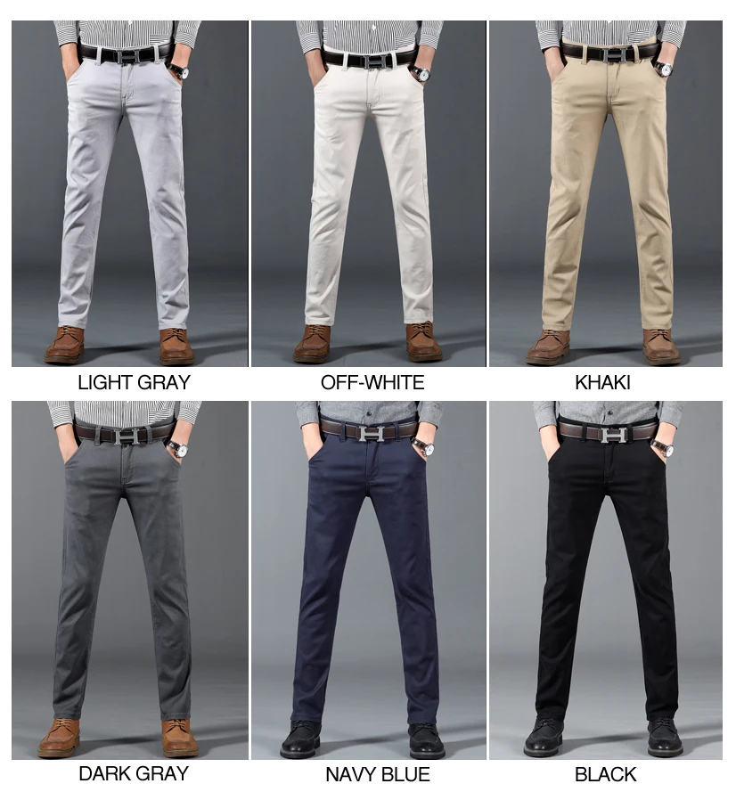 Брюки мужские прямые повседневные, деловые модные эластичные штаны, брендовые серые, белые, хаки, темно-синие, 6 цветов, весна 2020
