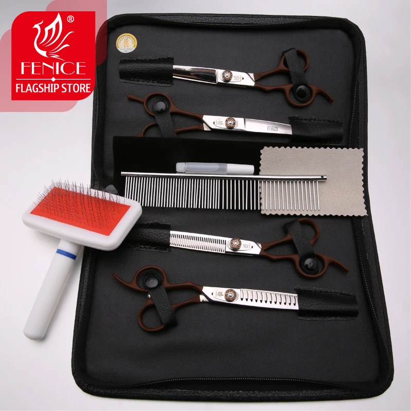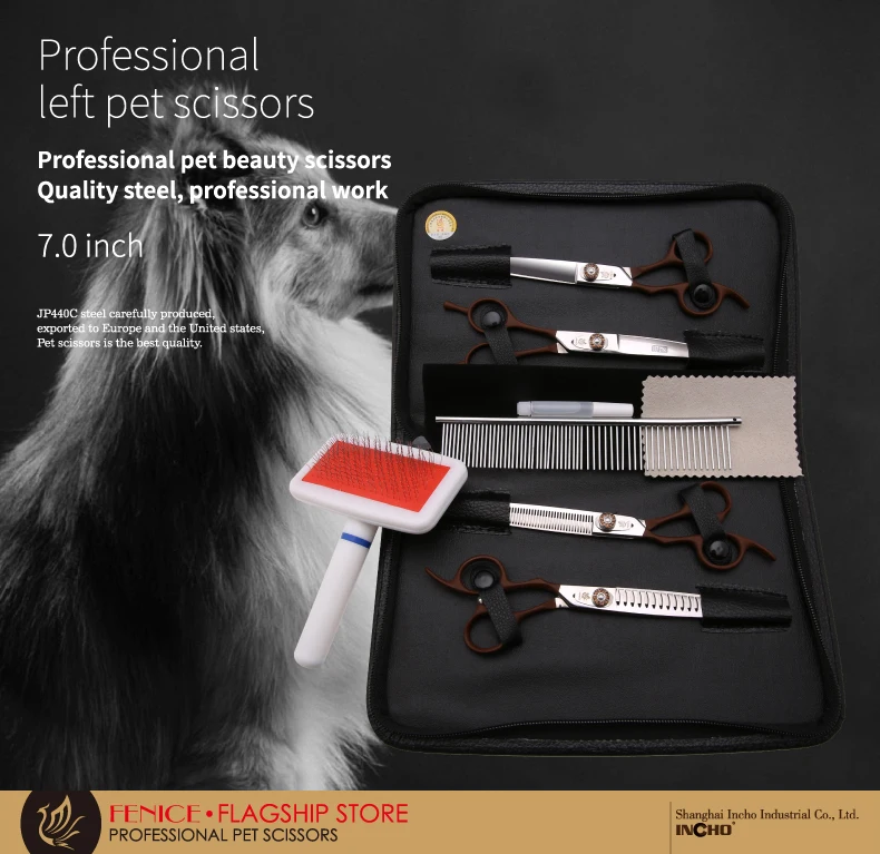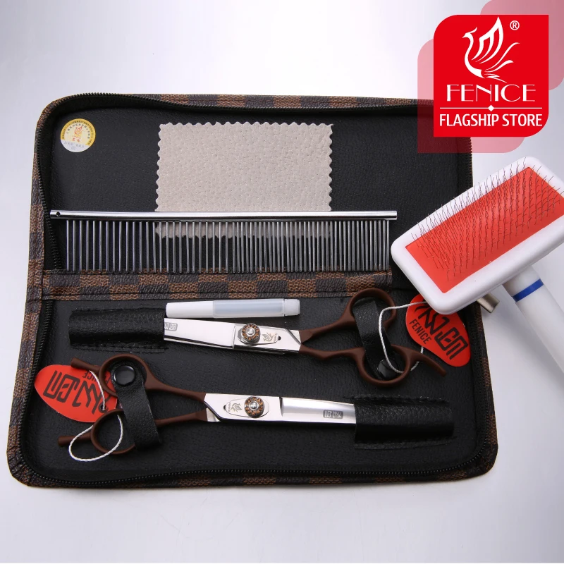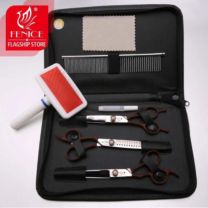 Fenice профессиональные ножницы для ухода за домашними животными для левшей Groomerкосметологи изогнутые ножницы для истончения набор ножниц