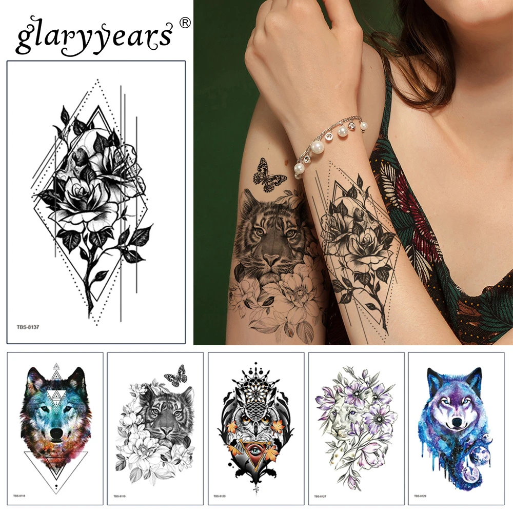 Яркие 19*12 см временные татуировки наклейки красочные поддельные цветы и животные флэш Водонепроницаемый Модный маленький боди-арт для мужчин и женщин