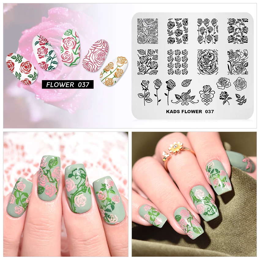 Пластины для стемпинга ногтей KADS художественный штамп с изображением для ногтей, с изображением весенних цветов