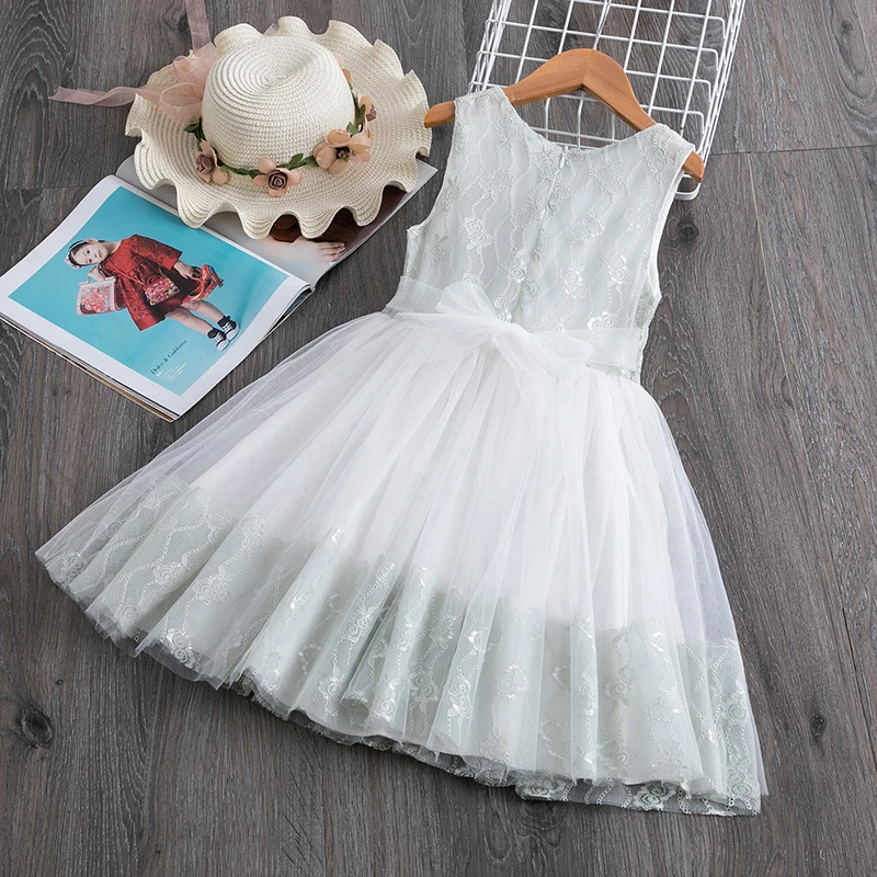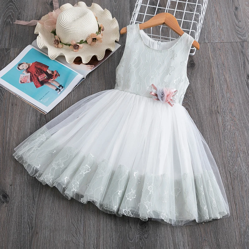 Детские платья для девочек, цветочное кружево, без рукавов, женское...