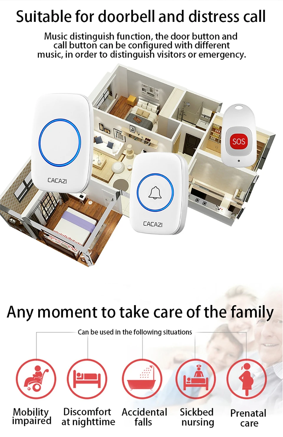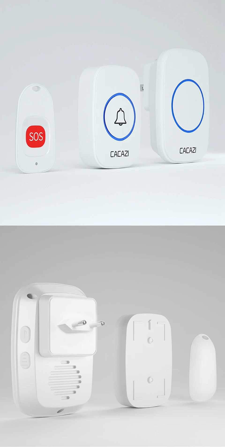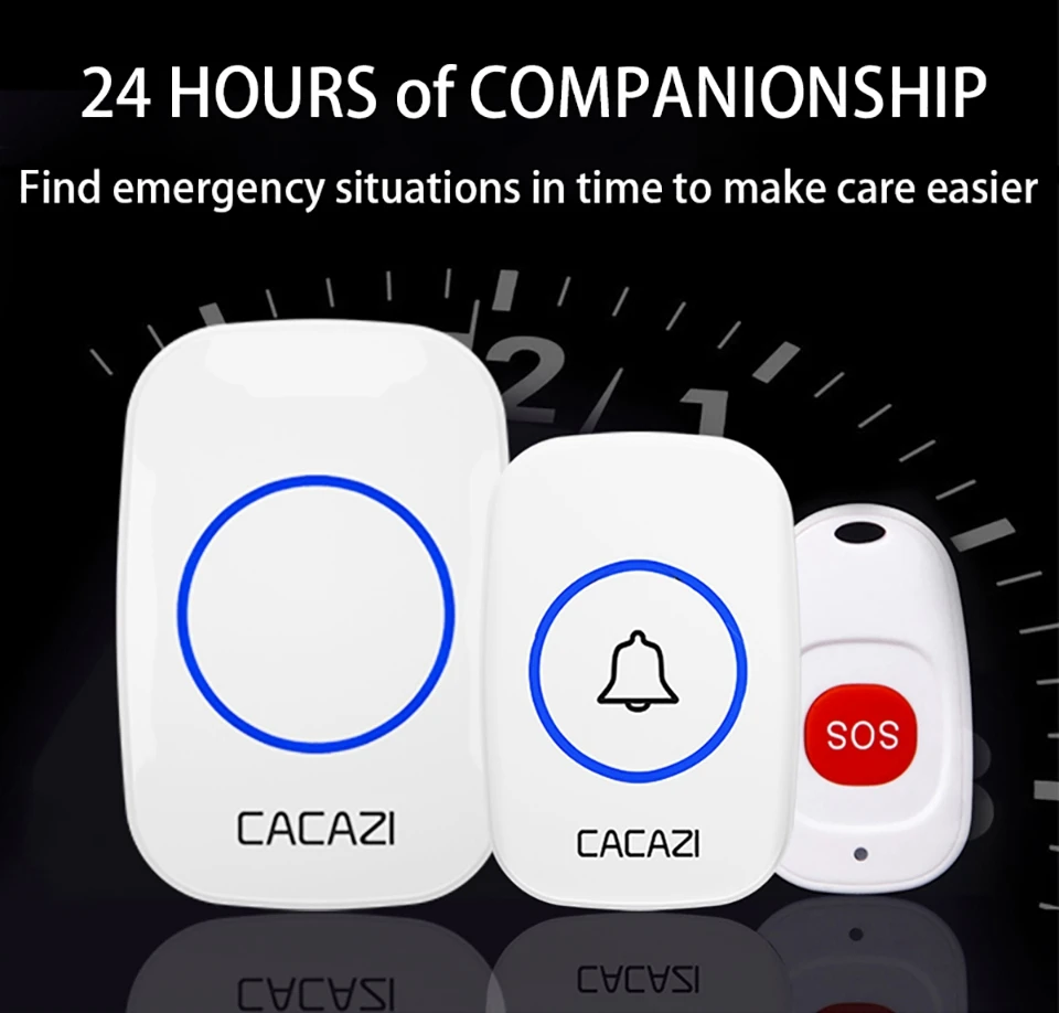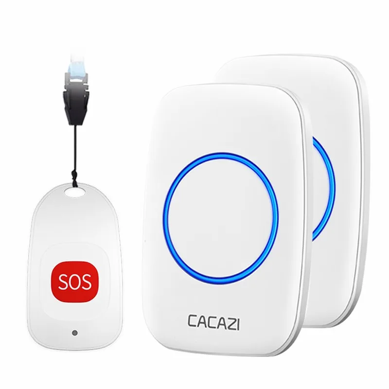 Беспроводной пейджер CACAZI, звонок для умного дома, для пожилых людей, экстренный звонок с сигнализацией, дистанционное управление на расстоянии 80 м, вилка стандарта США, ЕС, Великобритании, кнопка SOS