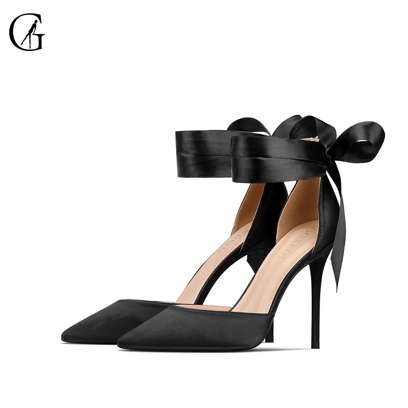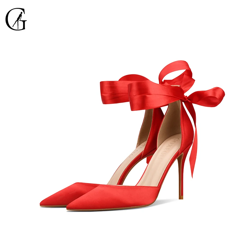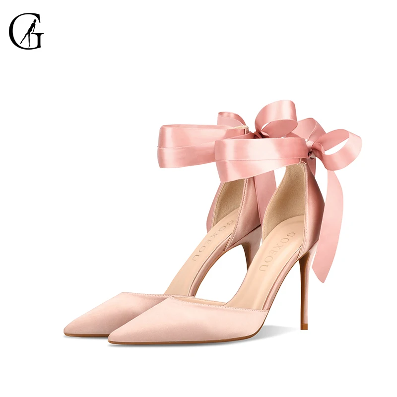 GOXEOU женские туфли-лодочки на высоком каблуке с Satin D'Orsay ремешки 4 Цвета туфли на шпильке с острым носком и на высоком каблуке; Вечерние Милая модная дамская обувь Размеры; Большие размеры 32-46