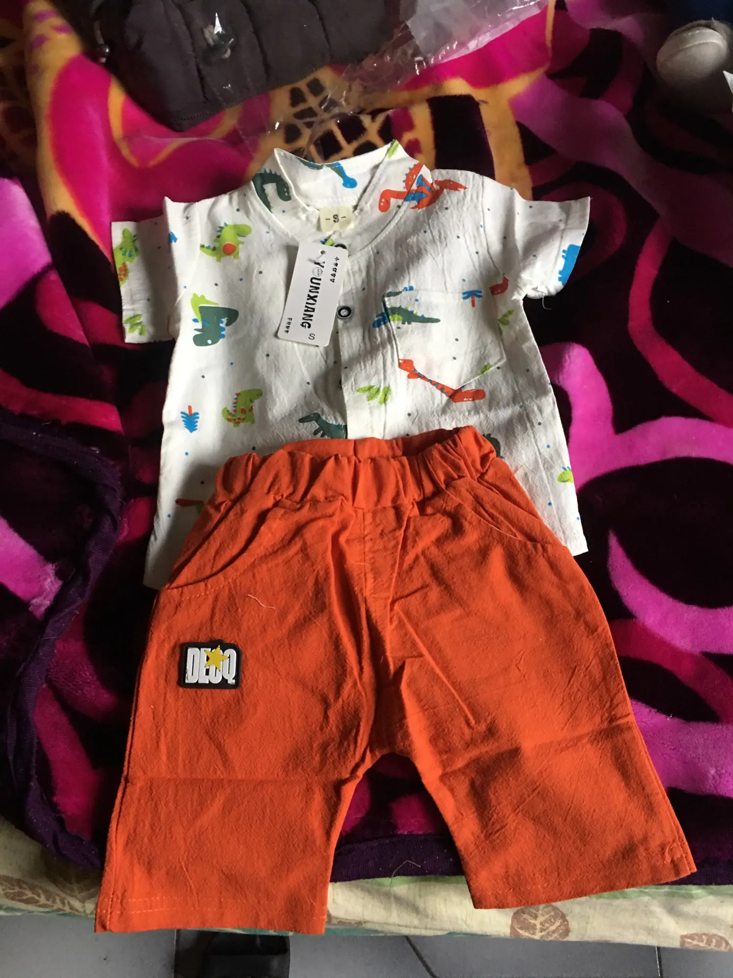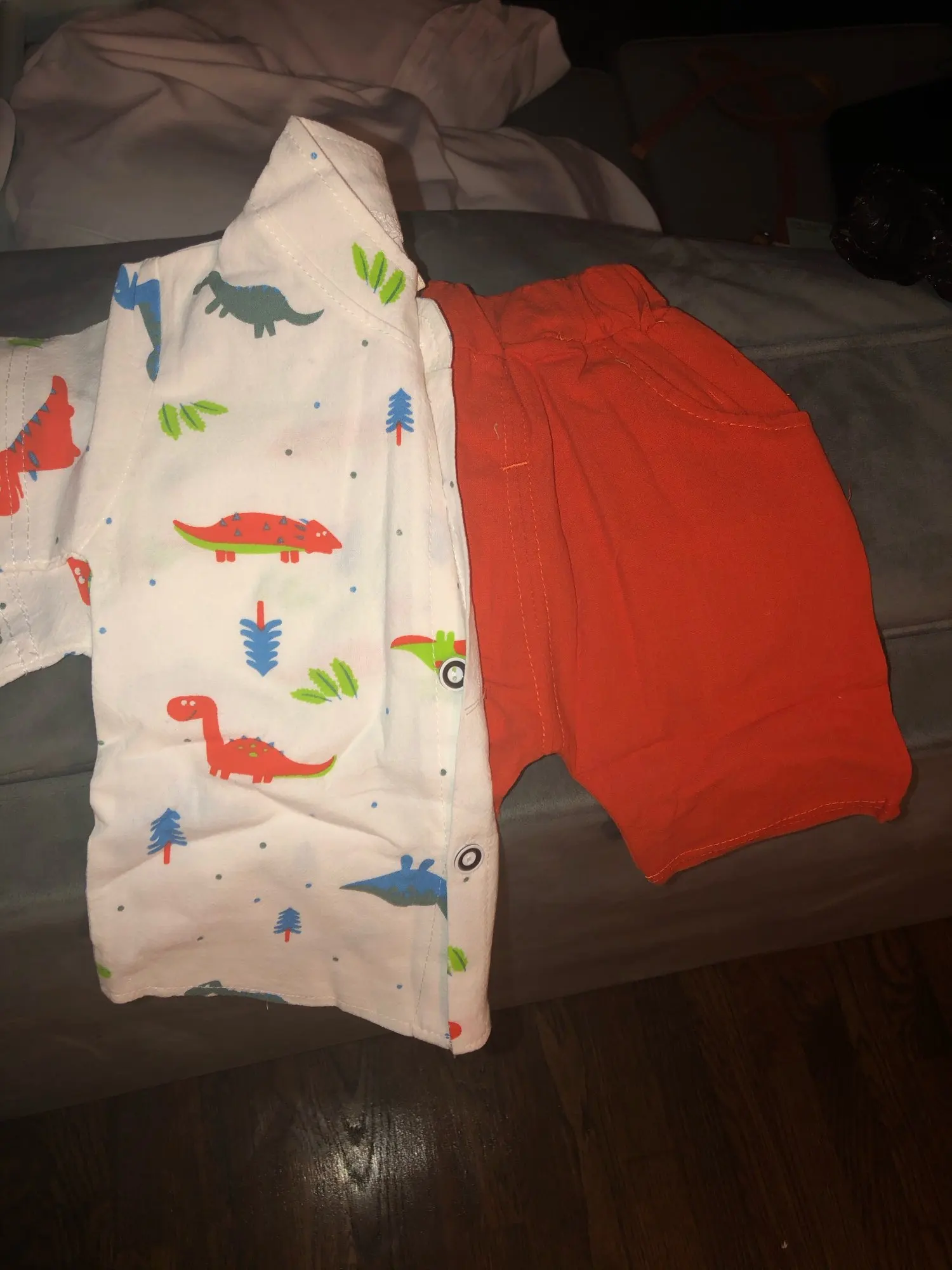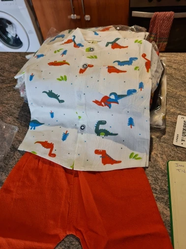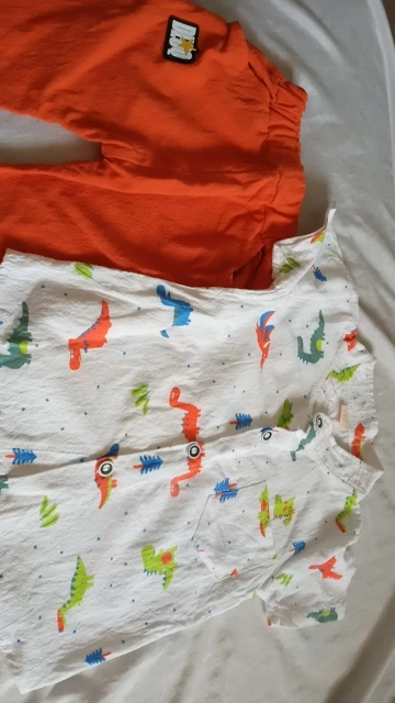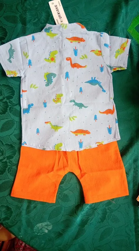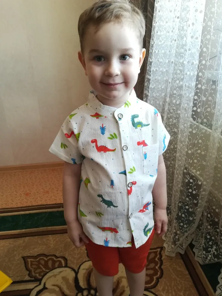 к сожалению не оправдано ожидание. рукавчики на рубашке пошиты не ровно, рисунок динозавров перевёрнутый.