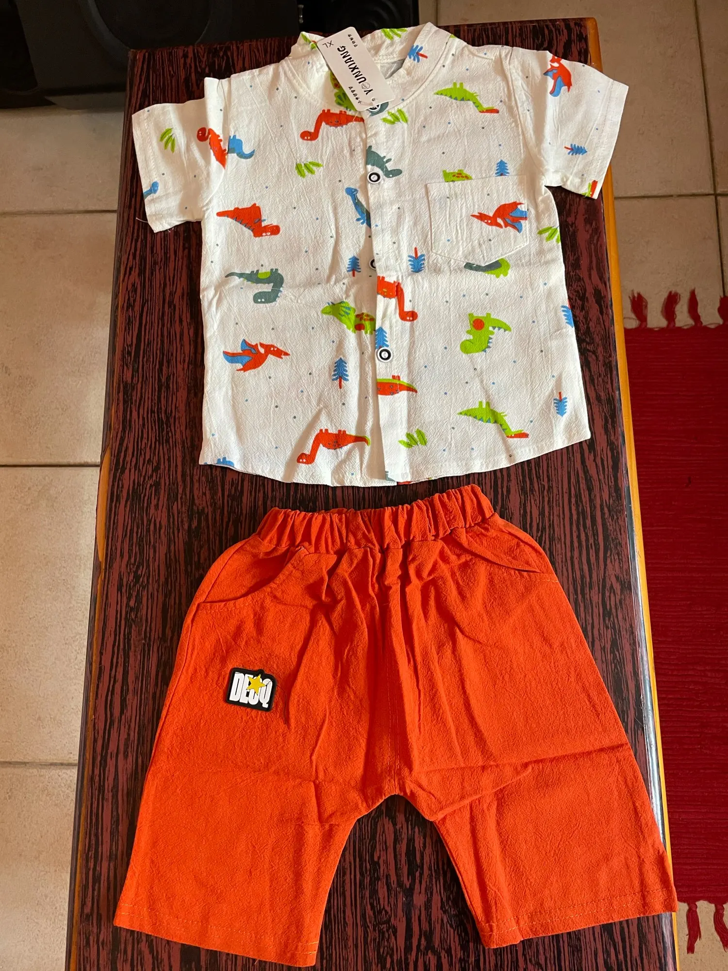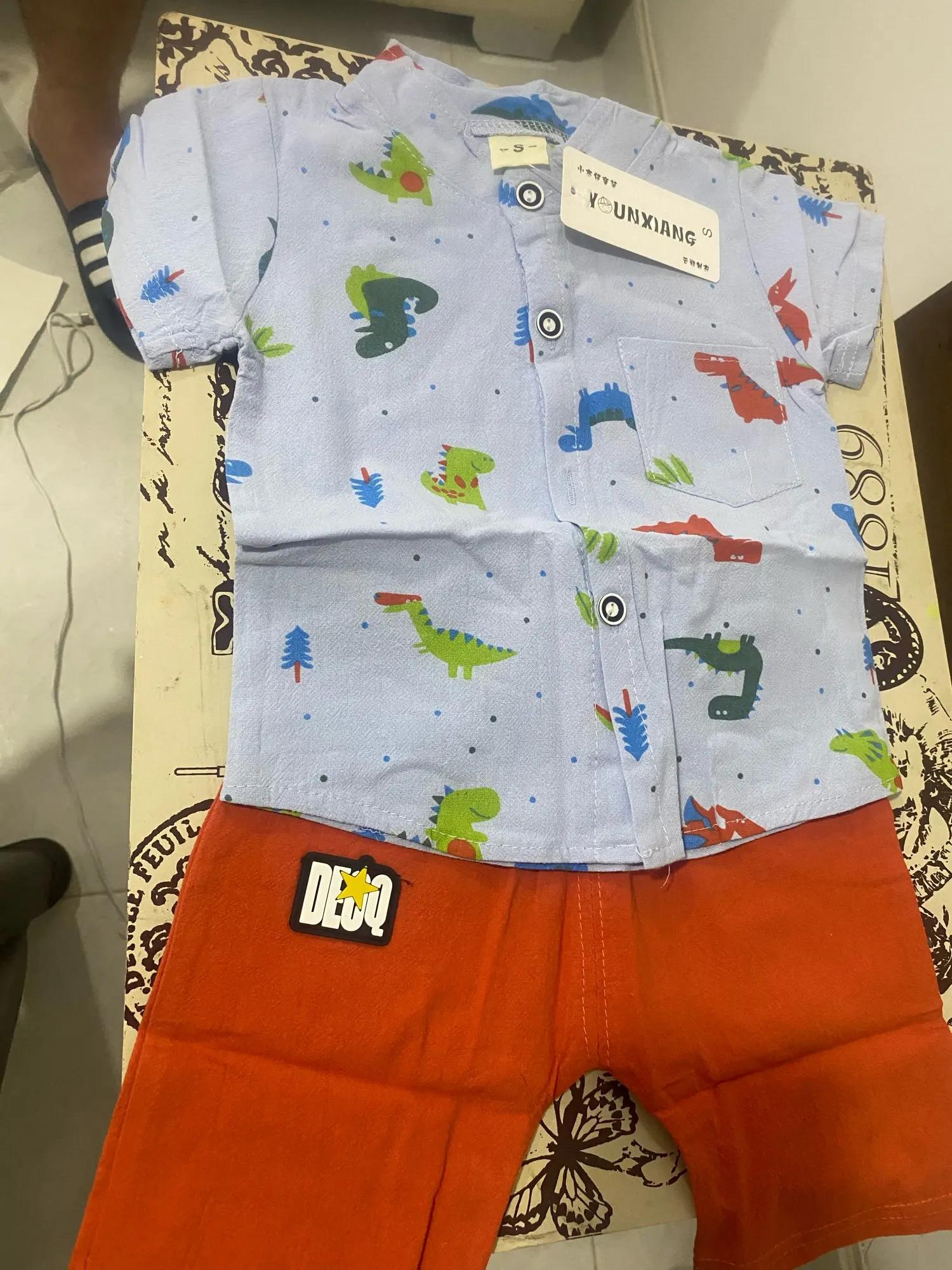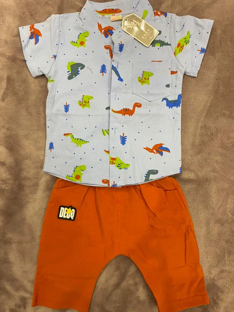 к сожалению не оправдано ожидание. рукавчики на рубашке пошиты не ровно, рисунок динозавров перевёрнутый.